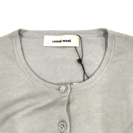 | 新品同様 レッセパッセ 38 長袖 ニット カーディガン フェイクパール / ラインストーン ボタン レディース タグ付 |