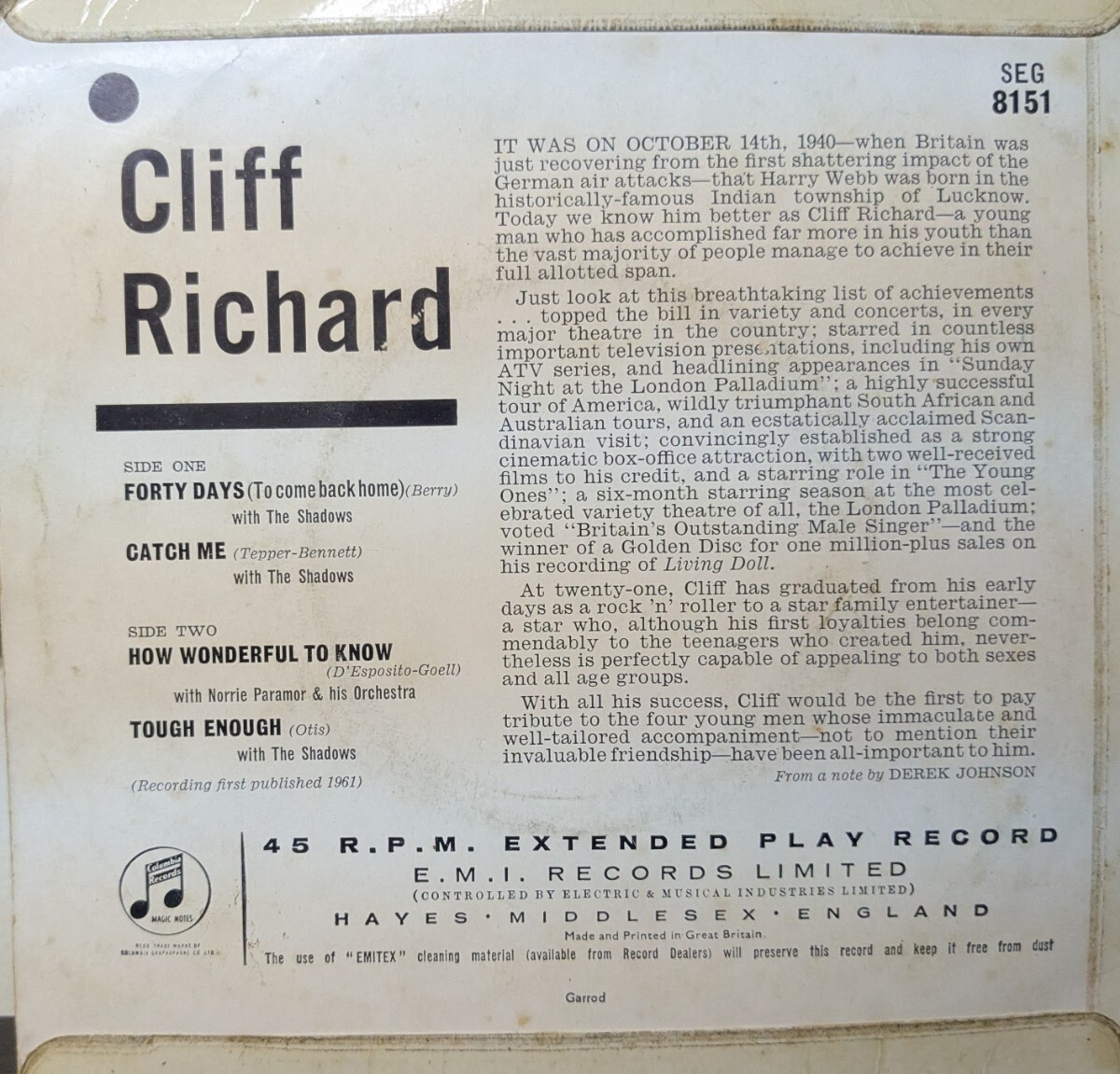 | 商品名稱 : | ☆CLIFF RICHARD/FORTY DAYS1962'UK EPS |