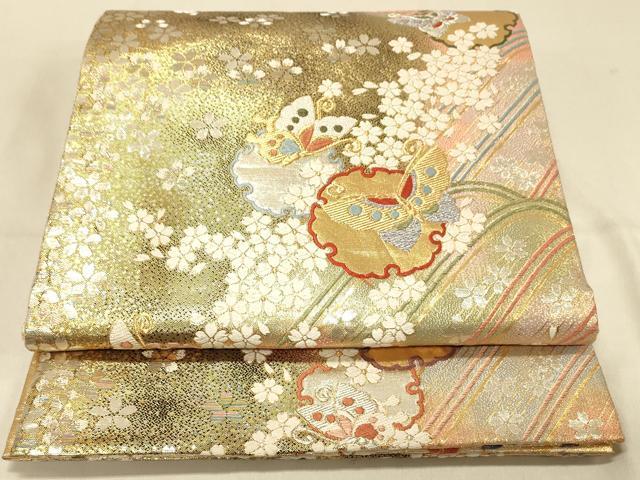 商品名稱 : 平和屋着物◎佐賀錦 六通柄袋帯 唐織 雪輪花蝶文 金銀糸 正絹 逸品 DAAX0621jm