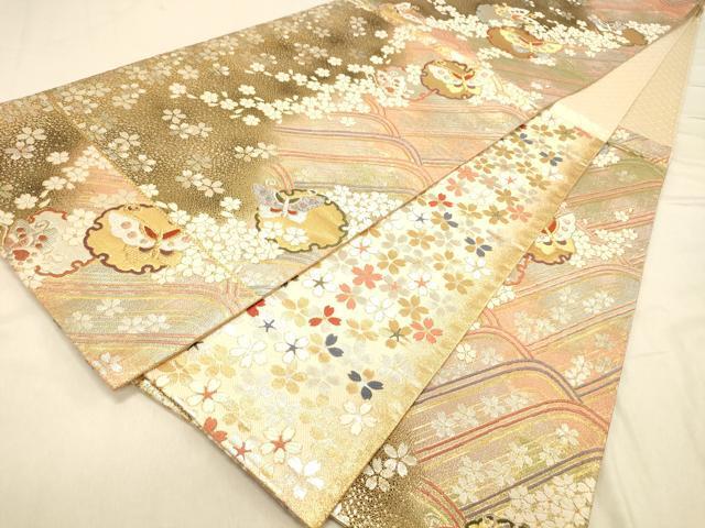 平和屋着物◎佐賀錦 六通柄袋帯 唐織 雪輪花蝶文 金銀糸 正絹 逸品 DAAX0621jm