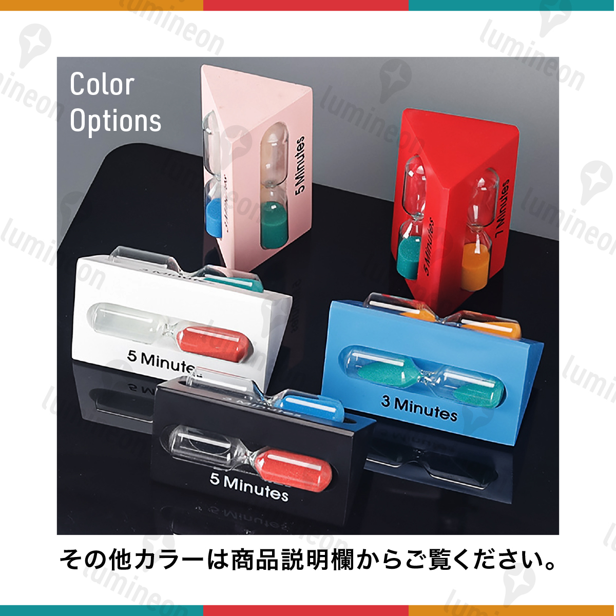 ※※火の近くや高温の場所は破損の原因となりますので設置しないでください。 ※計測時間はあくまで目安です。 その他の砂時計はコチラ サイズ (約)高さ10cm×幅6cm重量 約150gカラー ブラック素材 ガラス易碎品限空運,非易碎品可使用海運。 ・木・砂計測時間 3分・5分・7分