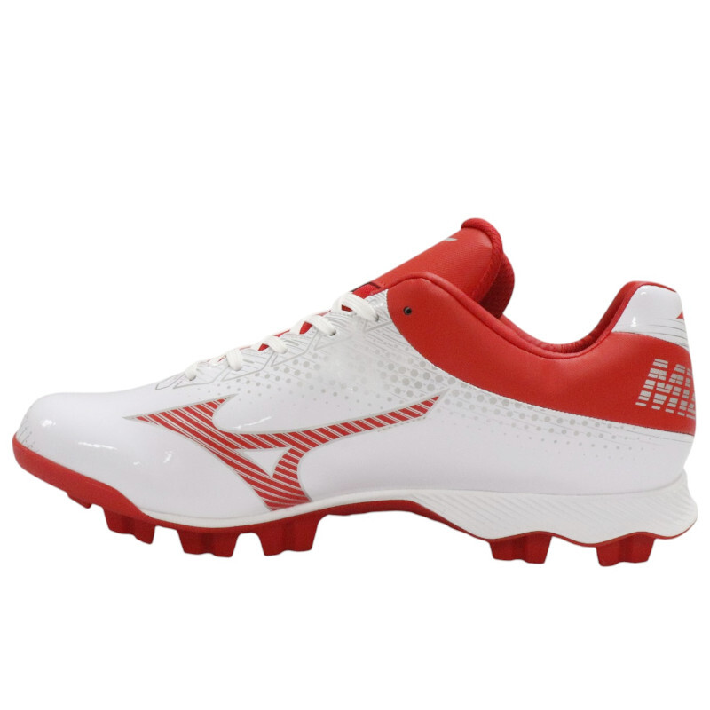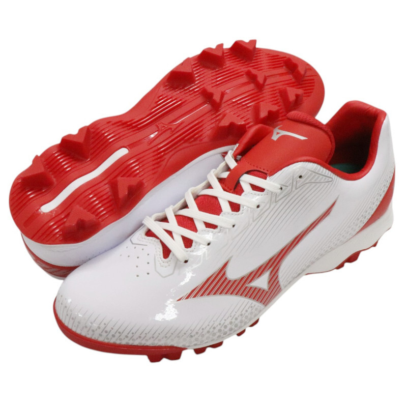 スペック ■メーカー名/ミズノ ■品番/11gp222162 ■カラー/ホワイト×レッド ■サイズ/27.0cm ■素材/甲材:人工皮革 底材:合成底 スパイク:合成樹脂(固定) ■原産国/カンボジア