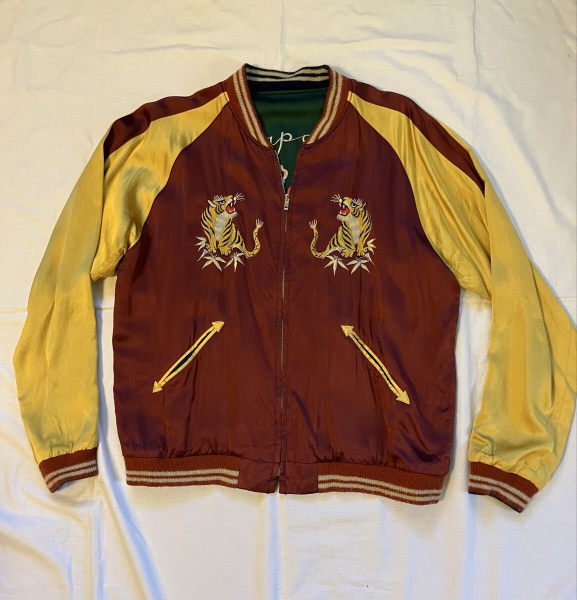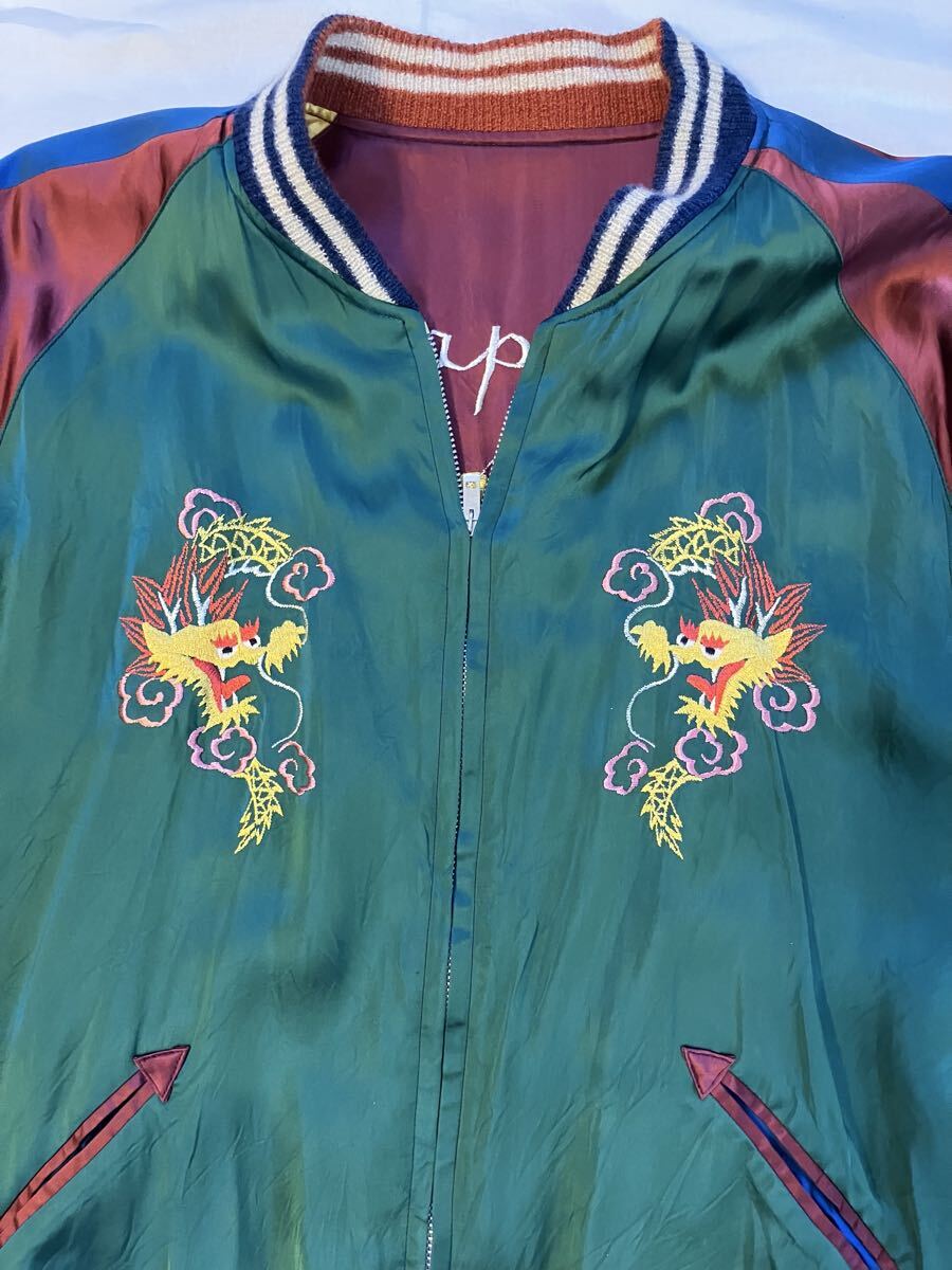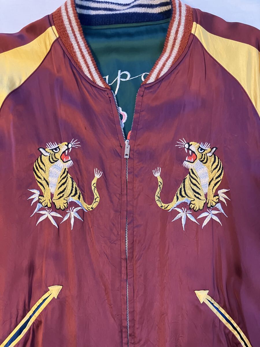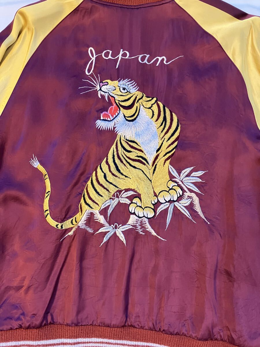 ■テーラー東洋(東洋エンタープライズ)のスカジャンです ■スペシャルエディションで港商ネームの物になります。 ■USEDです。2年前に購入しました。多少の皺はありますがまだまだ綺麗です。目立つ汚れ、破れはありめせん。 ■着用回数も少なく大事に着用しておりました。 ■ ヴィンテージ古董商品,有可能客製化、修改、換過零件,請下標錢注意。 でも珍しいスカジャンの復刻になります。 ■ 表面は日本を龍が取り囲むダイナミックな構図のジャパンマップ柄。 特筆すべきは生地の配色で、通常のスカジャンでは身頃の色と袖山のラインの色を合わせるのが一般的だが、本作ではグリーンの身頃に対してブルーのラインが施されている。 そこにワインの袖を組み合わせ、深い色合い3色のボディに色鮮やかな刺繍を施すことで、絵柄の迫力を際立たせている。 リバーシブル面はヴィンテージ古董商品,有可能客製化、修改、換過零件,請下標錢注意。 に準じた咆哮する虎の絵柄。 よく見ると、虎の身体はゴールドをベースにブラックとワインの2色で縞模様を表現しており、ワイン×ゴールドのボディの生地と刺繍を馴染ませる工夫が凝らされている。さらには経年変化によって褪色したレッドのリブなどもヴィンテージ古董商品,有可能客製化、修改、換過零件,請下標錢注意。 をもとに完全再現した。配色のセンスや熟練の職人による刺繍の美しさなど、両面とも非の打ち所がないパーフェクトな一着で、スカジャンの本家「港商」の名を冠するに相応しい逸品。 ■サイズは特々大です ■身幅(両脇下を直線で)約62cm、着丈は約65cm肩幅は約48cm裄丈は約86cmです。(着丈、袖丈はリブの先までです)素人の採寸ですので多少の誤差はご容赦ください。 ■発送方法はゆうパックの着払いみになります。 ■古着ですのでご理解のある方のみ入札お願いします。 ■落札後48時間以内需在賣家要求時間完成匯款 に入金の手続きができる方のみ入札お願い致します。(落札後48時間経過しても入金手続きがされてない場合は落札者都合でキャンセルとさせていただきます。) ■宜しくお願い致します >