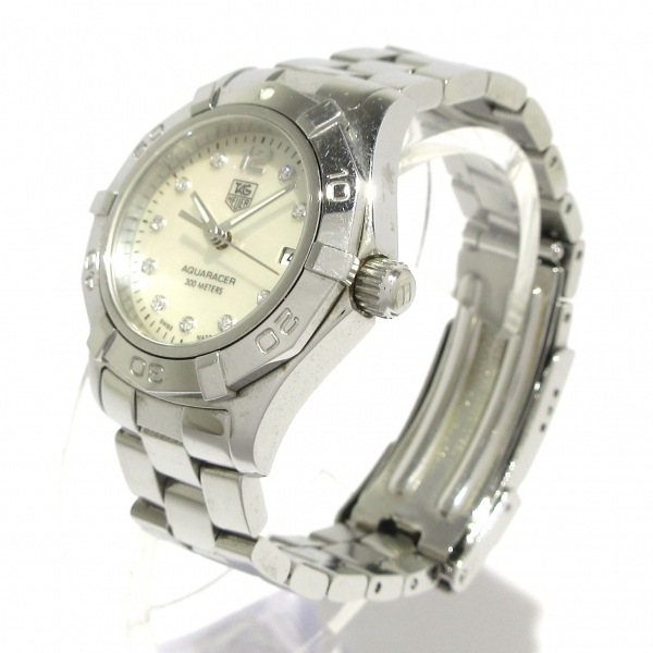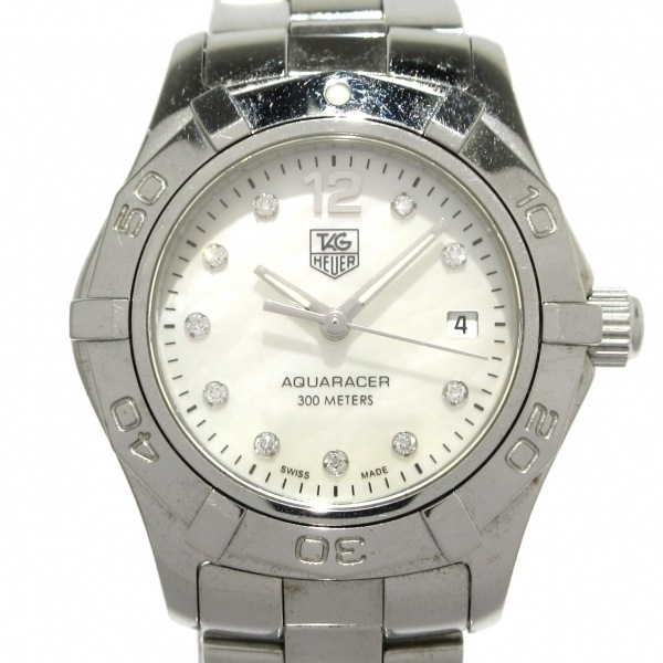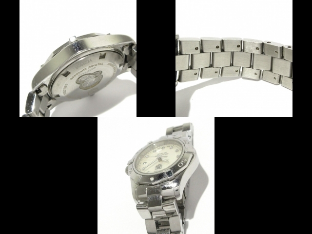 商品説明 ブランド:TAG Heuer(タグホイヤー) 型番:WAF1415 コンディションレベル:【6】ふつうに使える 実寸サイズ フェイス : 約 1.9 cm × 1.9 cm ケース : 約 3.3 cm × 2.7 cm (リューズ含まず) ベルト幅 : 約 1.3 cm ~ 1.4 cm 腕周り : 約 14 cm 商品詳細 ジャンル:腕時計 商品名:アクアレーサー デザイン:SS/10Pダイヤインデックス/シェル文字盤 文字盤カラー:ホワイトシェル ベゼルカラー:シルバー ケースカラー:シルバー ベルトカラー:シルバー ベルトの素材:SS (ステンレススチール) 風防の素材:サファイアクリスタル 男女別:レディース ムーブメント:クォーツ 動作状況:【確認出来ず】 ※時計内部の状態確認がとれておりませんので、 故障している場合にはお客様ご自身で修理をしていただく必要がございます。 修理代負担・返品はお受けできませんのでご了承の上、ご入札くださいませ。 防水:300m/1000ft シリアル:YG3*** 付属品:なし付属品について コンディションの備考 ※あくまで商品の外観ダメージです。動作状況をご確認の上、ご入札くださいませ。 【ケース】 ・風防 ⇒ 傷 ・全体的 ⇒ 傷 / くすみ 変色(汚れもあり) 【ベルト】 ・全体的 ⇒ 傷 / 変色 ・駒の溝 ⇒ 汚れ