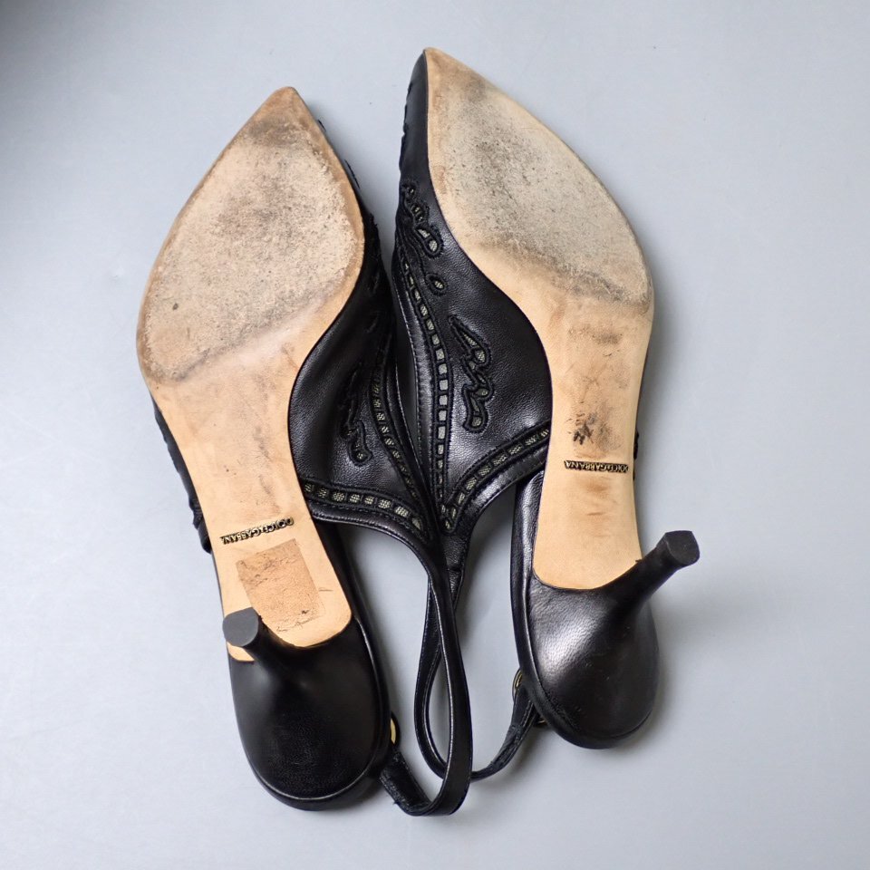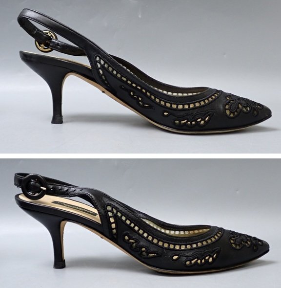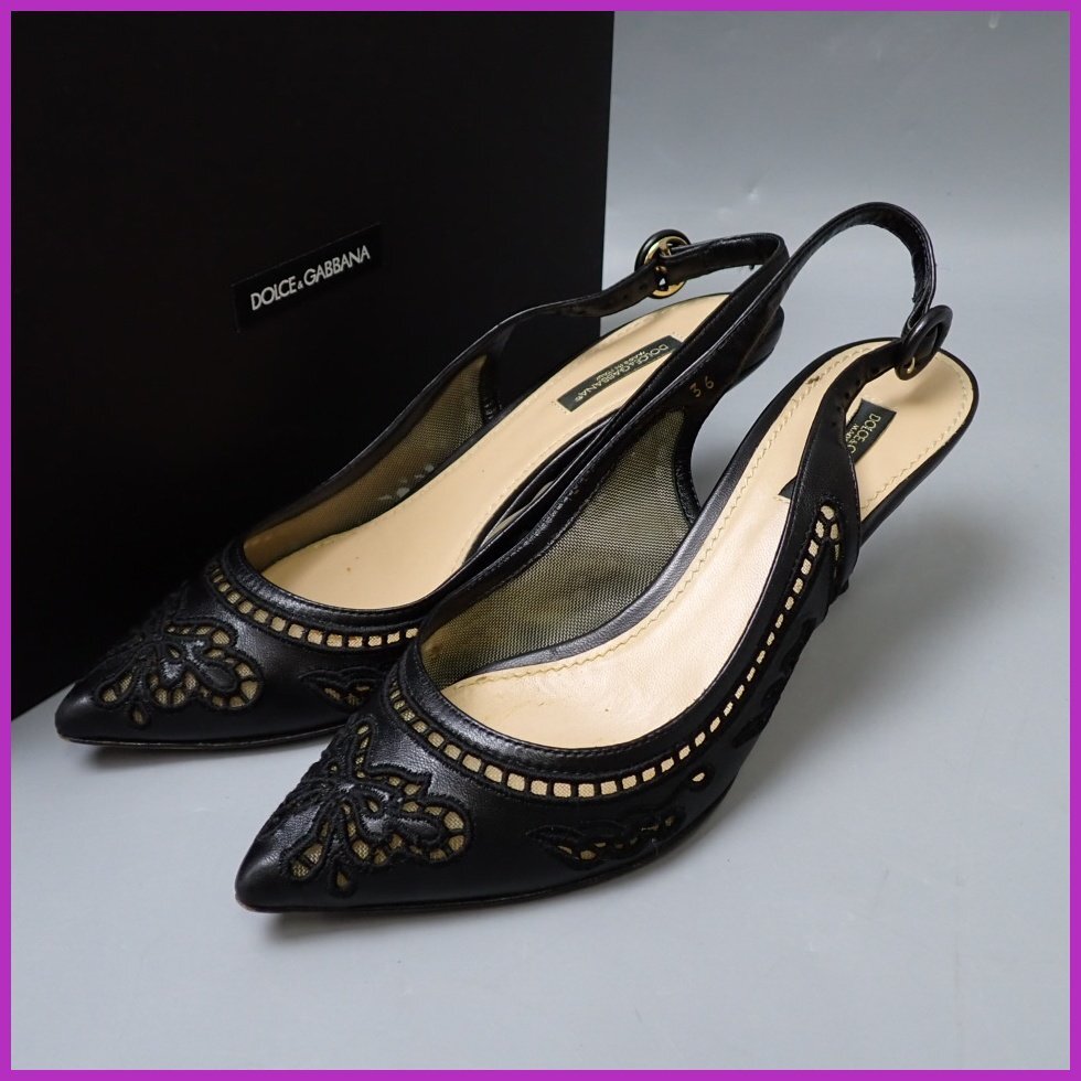 商品名稱 : ★Dolce&Gabbana/ドルチェ&ガッバーナ アイレットレース バックストラップパンプス 36/23.5cm相当/ブラック/レザー/外箱付き&2170400005
