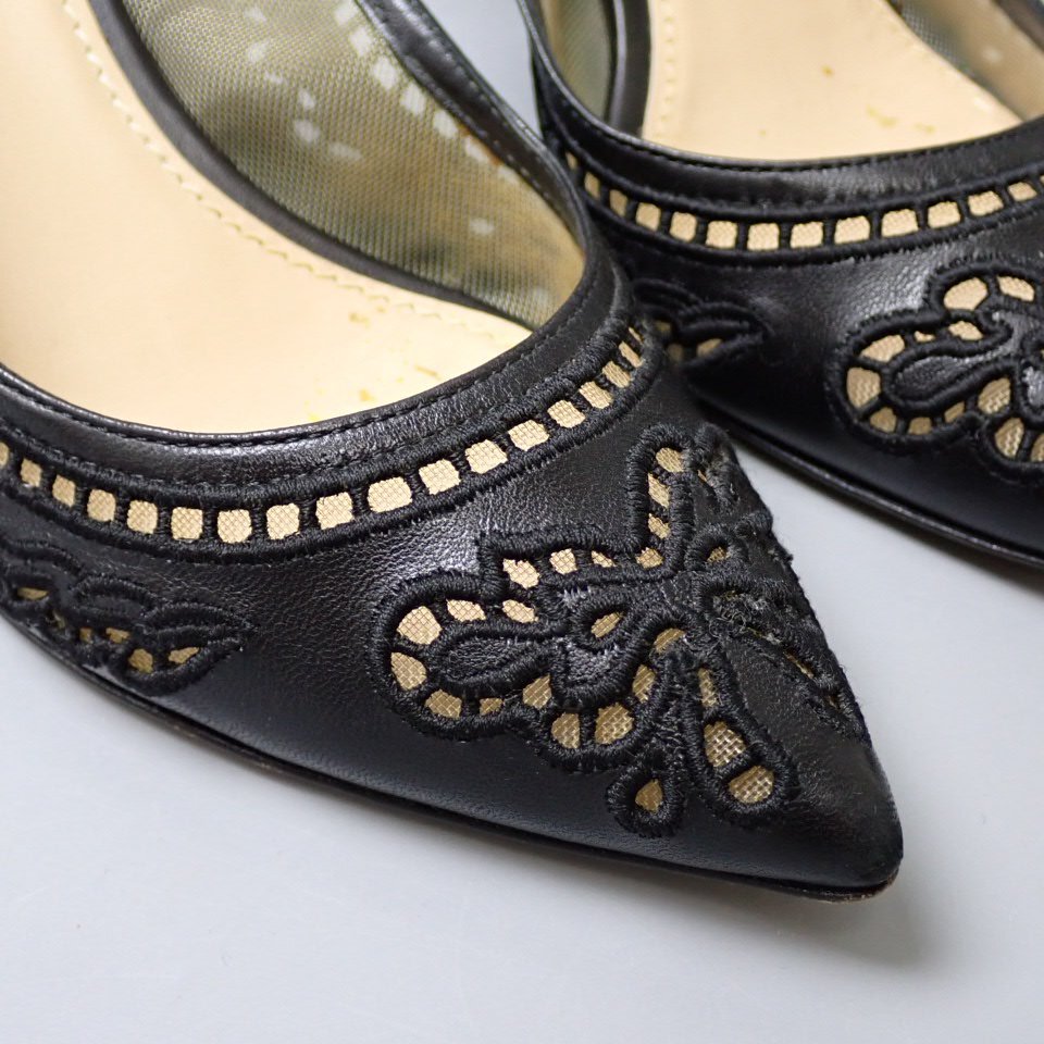 ★Dolce&Gabbana/ドルチェ&ガッバーナ アイレットレース バックストラップパンプス 36/23.5cm相当/ブラック/レザー/外箱付き&2170400005