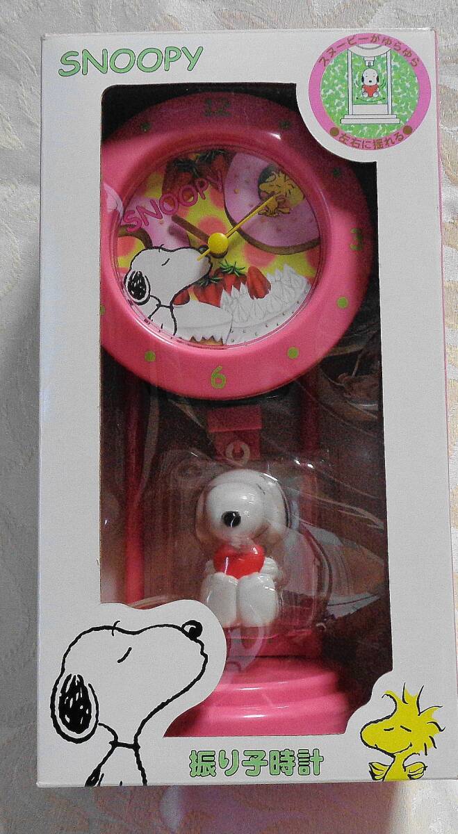 ◇スヌーピー^♪マスコット付振り子時計 ピンク | |