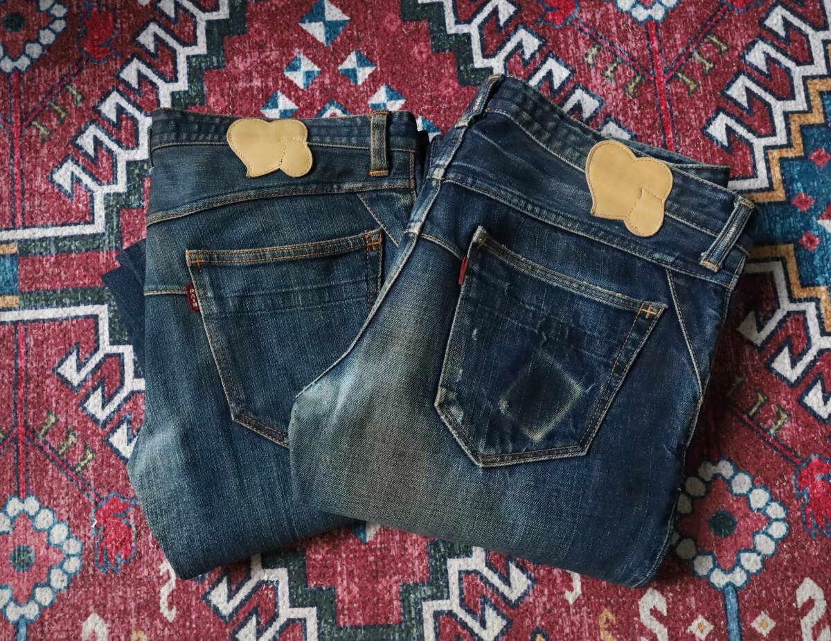 | 旧ナンバーナイン BIRDS期 PAINデニム ジーンズ 2本セット ハートレザーパッチ 涙 宮下期 ビンテージ まとめ売り | ||