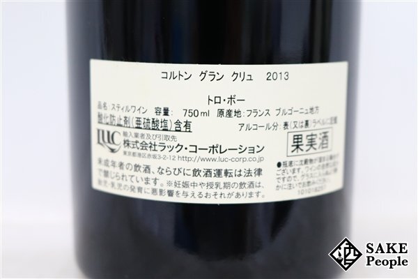 コルトン グラン・クリュ 2013 ドメーヌ・トロ・ボー 750ml 13% フランス ブルゴーニュ 赤