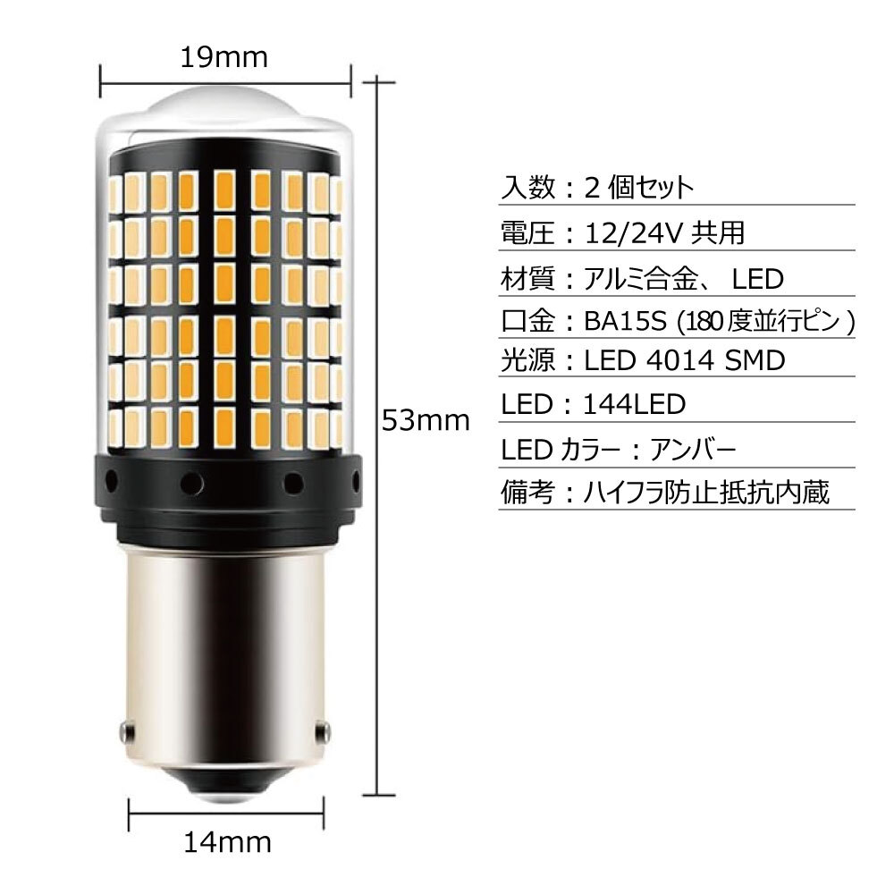 【2023/7/19 追記】 ※注 車両・取付箇所によっては抵抗値が不足し、ハイフラが発生する可能性があります。 その際は別途抵抗器(別売)を追加して取付する必要があります。予めご了承下さい。 (フロント or リアにて白熱バルブを使用しているとハイフラは発生しませんが、いずれも LED仕様としている場合はハイフラが発生しやすいです。製品自体に抵抗は内蔵されておりますが、トラックの場合必要とされる抵抗値が大きく、白熱バルブを使用しているか否かでハイフラ発生確率が変わります) 【商品名】 TRS 高輝度LEDウインカーバルブ S25 ハイフラ抵抗内蔵 アンバー 2個セット 12/24V共用 ピン角180度 BA15S ガラス易碎品限空運,非易碎品可使用海運。 カバー 310040 【商品説明】 ■ハイフラッシャーを防止する抵抗内蔵のLEDバルブ ■高発光効率の3014SMD LED素子144連搭載。上部は18連、周りは126連、超拡散レンズ(全カバー)付きで光線を集中でき照射距離を増やせます。360°全方位照射でき、昼間の環境で十分の認知出来る明るさと拡散性を備えています。市販のハロゲンより省エネルギーの上で、明るさは大幅にアップ! ■航空用アルミ素材と中空設計で放熱効果が抜群!LEDの性能を確保し、安定した発光が可能です。LEDチップと抵抗から発生する熱を効率良く逃し寿命を伸ばします、30000時間以上の耐久性。 ■12/24V共用なので幅広い車両で取付可能! 【各種仕様】 ■入数:2個 ■品番:310040 ■発光カラー:アンバー ■全光束:片側1500 lm (左右合計 3000 lm) ■取付:純正の電球と交換するだけの簡単取付 ■口金:S25 BA15S (ピン角度180度) ■注意事項 ※本製品はウィンカー専用バルブです。マーカー等常時点灯でのご利用は行わないでください。 ※S25バルブはピン角度180度(BA15S)と、150度(BAU15S)の2種類ありますが、本製品は【ピン角度180度】となります。お間違えの無いようご注意下さい。 >