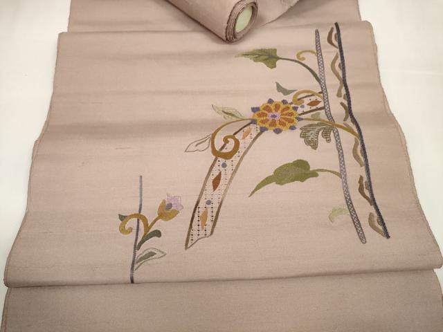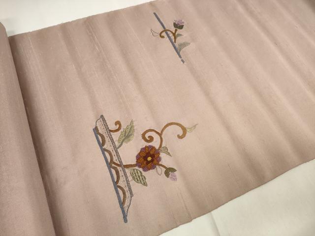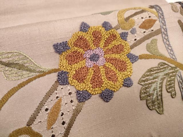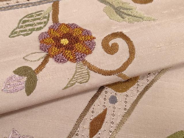 平和屋着物▼中国三大刺繍 スワトウ刺繍 汕頭刺繍 相良刺繍 総刺繍 名古屋帯 帯反物 花唐草文 逸品 未使用 DAAW7619zzz
