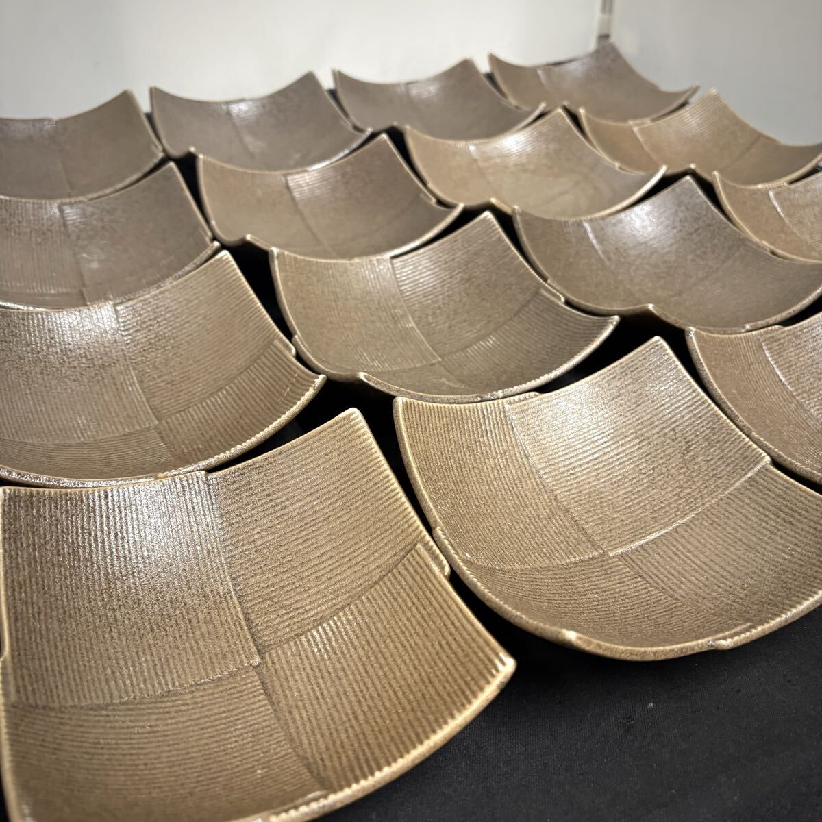 黒伊賀 筋入市松 炭化土 小鉢 16客セット 小皿 刺身皿 料亭 懐石 割烹 居酒屋 和食器 業務用食器 (11027E