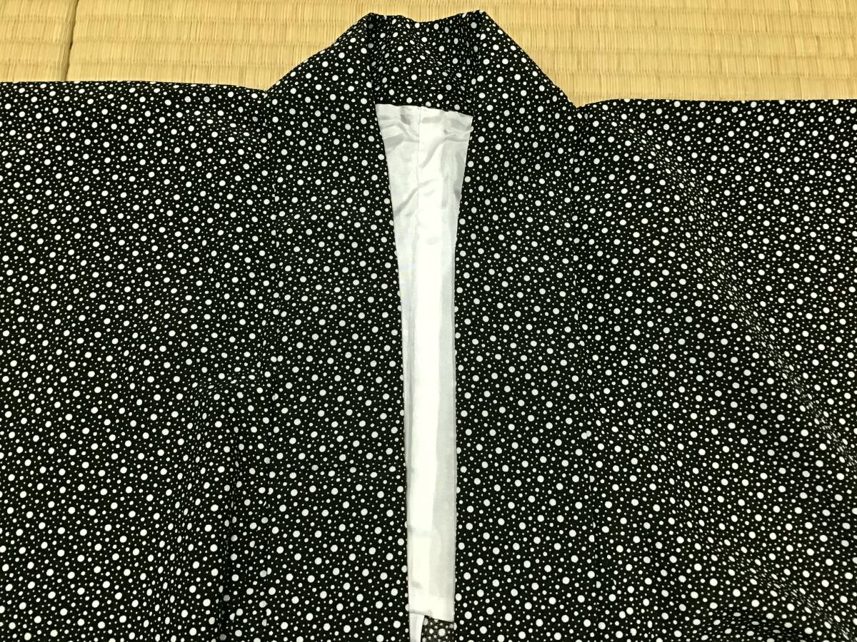 男物 洗える小紋 単衣着物 黒地に大小あられ 身丈151 裄69.5 美品 リサイクル着物