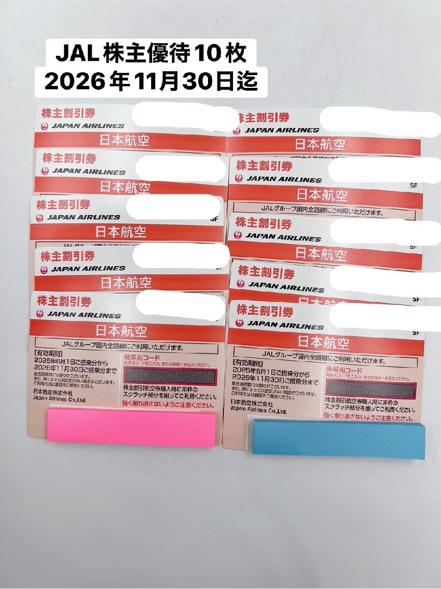 1円 JAL株主優待券 10枚 2025年6月1日 ~2026年11月30日 番号通知可 即日通知発送可 日本航空 割引券【AN004】 商品説明 ご覧いただきまして有難うございます 1円 JAL株主優待券 10枚 2025年6月1日 ~2026年11月30日 番号通知可 即日通知発送可 日本航空 割引券【AN004】 ■有効期限: 2025年6月1日 ~2026年11月30日 ■枚数: 10枚 ■発送定形外郵便 到着まで3~5営業日どかかる場合がございます。 *即日番号通知可能でございます(金曜日は定休日) 番号通知:入金が確認でき次第可能 通知できるのは10-17時まで 発送:13時までの入金確認でき次第、当日発送可能 ※こちら間違いなく未使用と確認の取れた優待券を出品しておりますため、番号通知は可能でございますが通知後の使用の有無に関する責任につきましては一切負いかねます。ご了承ください。 株主優待番号1つにつき、お一人様片道1区間に対して、普通席大人普通運賃(小児の場合は普通席小児普通運賃)を50%割引でご利用いただけます。 優待券の詳細については、JALのホームページでご確認ください。https://www.jal.co.jp/jp/ja/jalonline/manual/adp/shareholders/ 現状品故障品、問題商品、可能無法修理,請注意 のお渡しとなります。 画像をよくご覧いただきご確認ください。 ノークレーム、ノーリターン、ノーサポートでお取引いただける方のみご入札お待ちしております。 発送は迅速に対応致します。同梱は不可同捆不可,商品會有獨立的日本運費。 とさせていただきます。 「まとめて取引」にて送料を決済されましても 正規の送料に変更させていただきますので、 予めご承知の上ご入札をお願い致します。 同梱不可となります。 利用可能なクレジットカード・金融機関 一部のカテゴリに出品された商品のお取引には、クレジットカードを利用できません ※「チケット、金券、宿泊予約」カテゴリ 「アンティーク古董商品,有可能客製化、修改、換過零件,請下標錢注意。 、コレクション 」カテゴリの貨幣、切手、官製はがき その他など詳しくは下記「Yahoo!かんたん決済ヘルプ 」をご参照くださいhttps://support.yahoo-net.jp/PccAuctions/s/article/H000013378 ■評価:未使用品 ■輸送中における商品破損については一切の責任を負いかねます。 補償対象となるのはゆうパックのみです。 その他配送方法をご選択の場合で補償を必要とされる場合には、必ずご決済前にご連絡お願い致します。 ■お届け日数を調べる ご決済後1営業日以内の午後に発送させていただきます。 発送元郵便番号:921-8823https://www.post.japanpost.jp/send/deli_days/index.html ■輸送中における商品破損については一切の責任を負いかねます。 補償対象となるのはゆうパックのみです。 その他配送方法をご選択の場合で補償を必要とされる場合には、必ずご決済前にご連絡お願い致します。 (以下、注意事項参照) その他出品商品もぜひご覧ください ●その他の出品リスト 注意事項 注意事項 ●下記注意事項は必ずお読みください ●現地にて直接手渡し商品有可能只能自取,自取費用相當高,請查看頁面確認 などの取引は大型商品170サイズ以上のもの以外は対応しておりません。落札後に直接お取引の希望をされましても、ご対応致し兼ねますので予めご了承ください。 ●オークションストアのため、落札金額に別途消費税が掛かります ●商品発送時、納品書にて商品名と金額の記載されているものを添付しております。 領収書の発行は致しておりませんのでご了承ください。 ●送料には梱包料含がふくまれます。実際に相違ある場合でも一切の返金には応じ兼ねます ●同梱は不可同捆不可,商品會有獨立的日本運費。 とさせていただきます。 「まとめて取引」にて送料を決済されましても正規の送料に変更させていただきますので、予めご承知の上ご入札をお願い致します。 ●掲載されている画像から受けるイメージと実際に見る商品は少なからず色違いが生じる場合がございます。掲載情報のみに頼る売買は誤解が生じやすく、特に中古品の通信販売で 起こるトラブルの原因の多くがこの点から発生しております。トラブル防止の観点からも商品の状態や程度については事前に質問するようお願いします ●専門的な商品については、当店から詳細なご使用方法や説明は致しかねます(詳しくはメーカーへお問い合わせください) ●動作確認は通電や簡素な動作確認のみとし、現状品故障品、問題商品、可能無法修理,請注意 として出品させていただいております。動作確認の難しい商品はランクDで表示しておりますので参考にしてください ●ブランド正規品保障 出品中の商品につきましてはすべて正規品(本物)でございます。万一標記の物と異なる贋物(偽物)であることがあった場合、商品到着後3日以内に限り、商品代金をご返金させて頂きますので安心してお買い求めください。返金処理につきましては、返品商品を受領後に当店の発送商品であることを確認したのち返金となりますことをご承知おきください (古物許可証第 511090013146号 石川県公安委員会) ●新規の