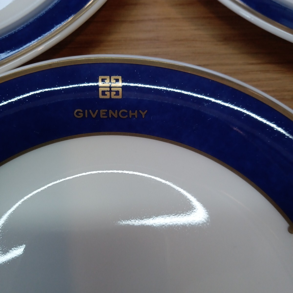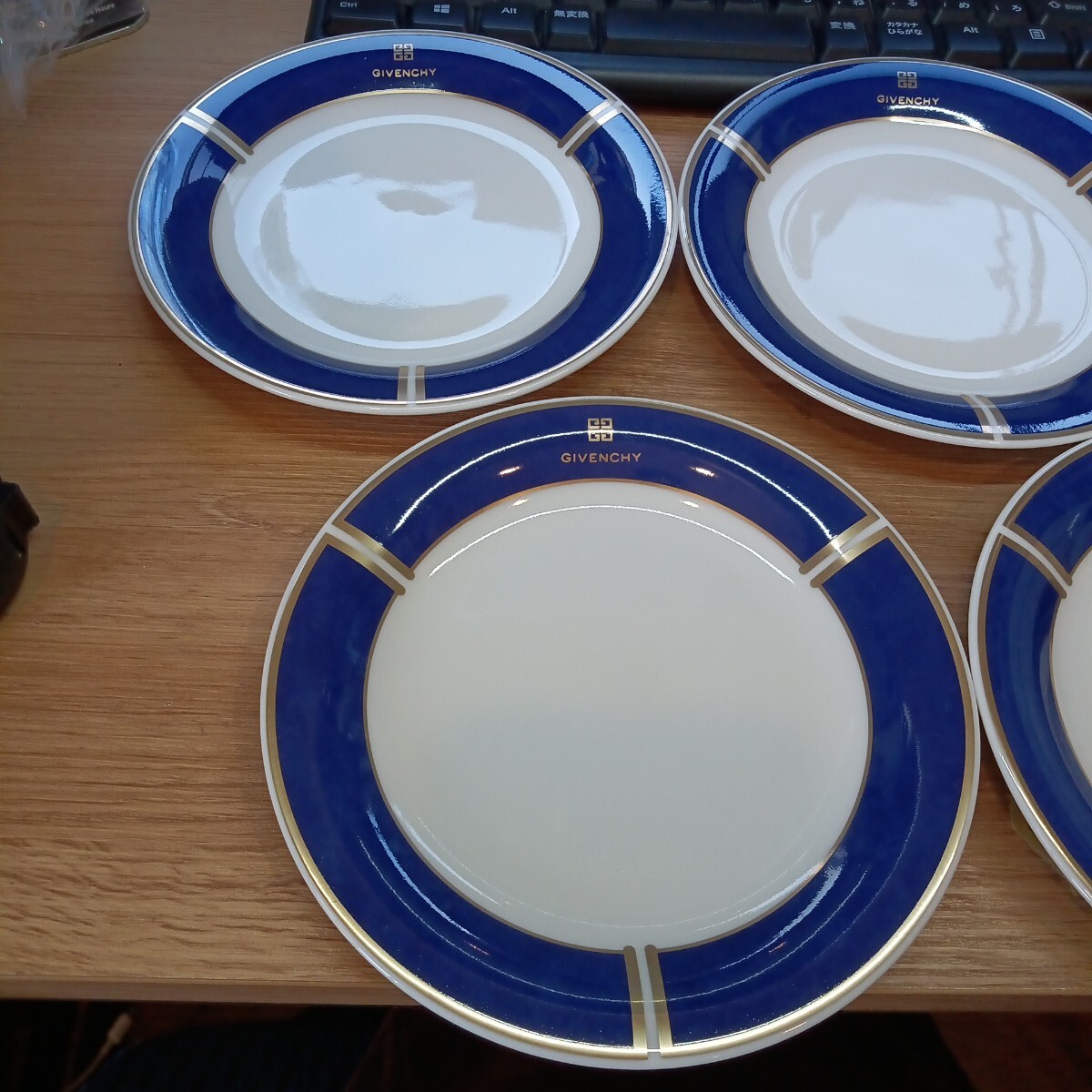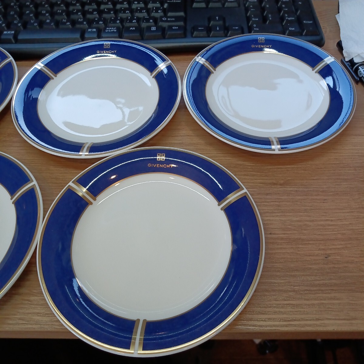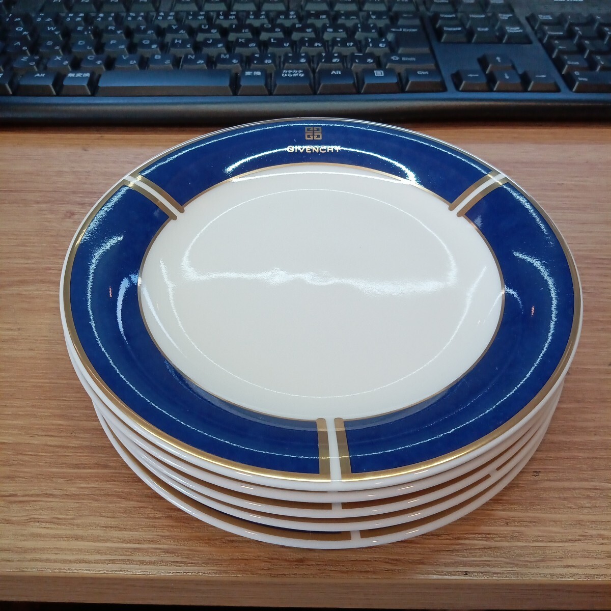 美品 ジバンシー yamaka 器 5客 セット 直径約16㎝ 金彩 青 ブルー 食器 洋食器 取り皿 キッチン 食器 GIVENCHY 1104-クロ前-EI4
