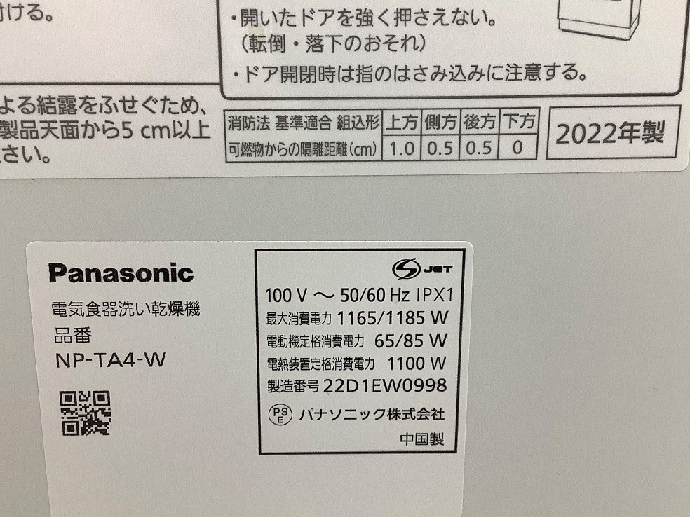 ★商品詳細★ ●状態● 傷や汚れあり ・本体使用にともなうキズ、スレ、シミ、ヤケ、クスミ、ヨゴレ、ホコリ、キバミ●仕様/内容● ・メーカー:Panasonic ・品名:電気食器洗い乾燥機/食洗機 ・型番:NP-TA4-W ・動作状況:動作確認済/内部水気有 2022年製/ACB ・寸法:横幅55cm・付属品は画像の物が全てです。 ※掲載画像が全てになりますのでご確認の程宜しくお願い致します。 ※質問による商品説明の追加があった場合、文章追加として、下段に追加させて頂いておりますのでご確認下さい。