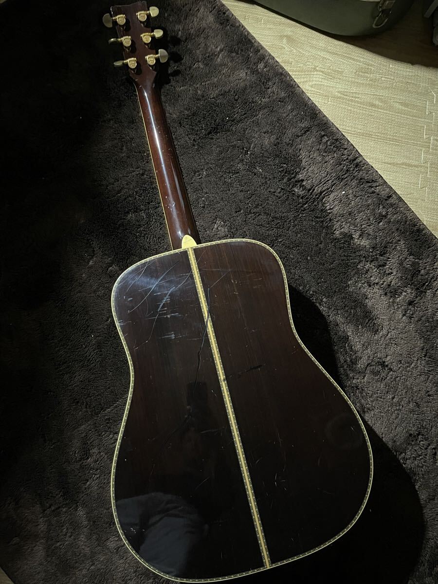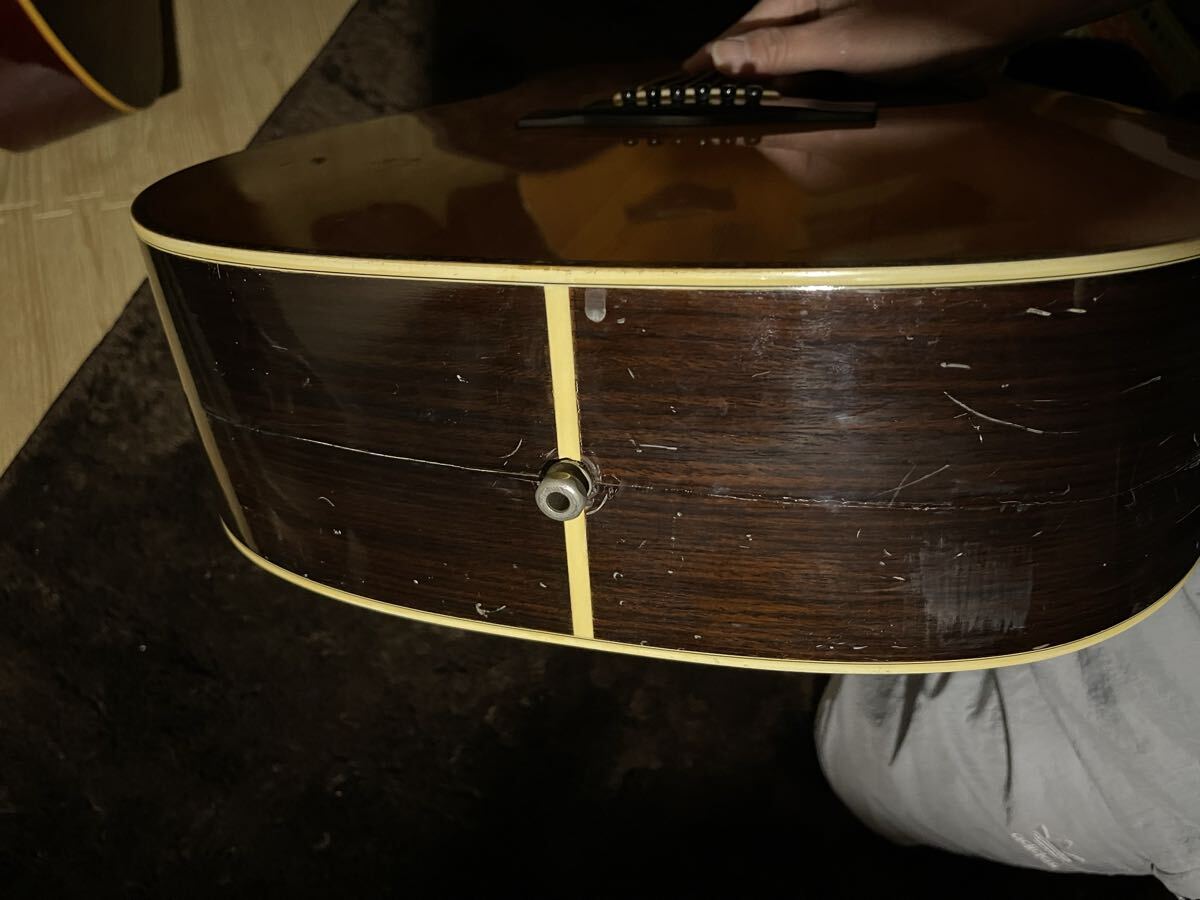 【Yamaha L-10(後期モデル)】 ヤマハの高級モデル「Lシリーズ」の中でも評価の高いL-10(後期型)です。丁寧な造りと上質な木材による深みのあるサウンドが魅力で、長年多くのギタリストに愛されてきた名機です。 【基本仕様】 ・トップ:スプルース単板 ・サイド / バック:ローズウッド※玫瑰木屬於華盛頓條約条約牴觸物品,無法國際運送。 ・ネック:マホガニー※桃花木屬於華盛頓條約条約牴觸物品,無法國際運送。 ・指板:エボニー 【コンディション】 ・全体的に多くの擦り傷や使用感があります。 ・ヘッド部分に1か所クラック、ボディ底部に1本長めのクラックがありますが、どちらも修理済みで演奏には全く問題ありません。 ・ネックはストレート、トラスロッド(ナカジリ)は正常に機能しています。 ・フレット残り約70〜80%、まだ十分に使用可能です。 ・12フレット6弦側の弦高は約3mmで、プレイアビリティ良好です。 ・サドルに余裕があり、弦高調整も可能です。 【サウンド】 見た目には傷や修理跡があるものの、**音の響きは本当に素晴らしく、Martin D-28やD-35などの高級モデルにも引けを取らない力強く豊かなサウンド**です。実際に弾いてみて、その鳴りの良さに驚かされました。 【付属品】 ・ハードケースなし(丁寧に梱包して発送いたします) ビンテージの味わいと極上のサウンドを兼ね備えた一本です。ぜひご検討ください。 ありがとうございます。 >