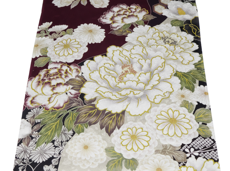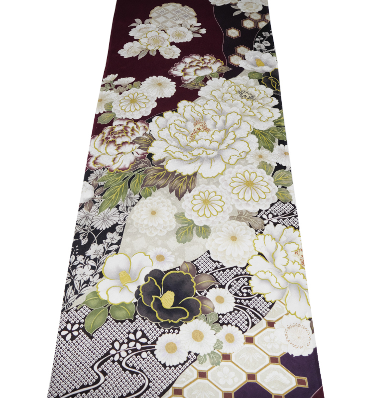 | 商品名稱 : | 1764番 新品 正絹 振袖用サンプル地端切れ 長さ約98cm 鳳凰や菊等の吉祥柄の地模様入 臙脂と黒と焦げ茶の地色に牡丹や椿の花模様 |