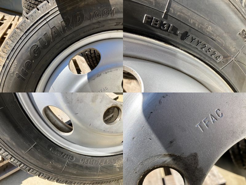 超バリ溝! 2024年製 ヨコハマ IG91 スタッドレス 6本 205/70R16 111/109L LT 12PR TOPY TFAC 16インチ5.5K ダイナ トヨエース デュトロ TFAC 16×5.5K 16インチ 5.5J PCD203.2 5穴 ハブ径:約 146mm 穴径 32.5mm 残溝 12.5mm 12.4mm 12.8mm 12.4mm 12.6mm 12.9mm 状態 タイヤに異常なし ホイールに傷あります。 エアバルブは消耗品の為、交換前提でお願いいたします。 画像にて判断できる方のみご入札ください。 ■個人宅は配達できません。 I can only send company ○○鈑金、○○自動車など会社名宛て(店舗)、または福山通運営業所止めのどちらかになります。 ●電話番号必要です。 ●福山通運元払いにて出荷します。 ●直接引き取りの場合、保管場所は東御市になります。 | ||||
