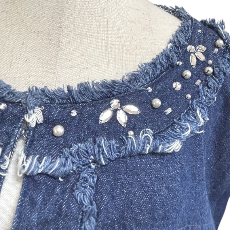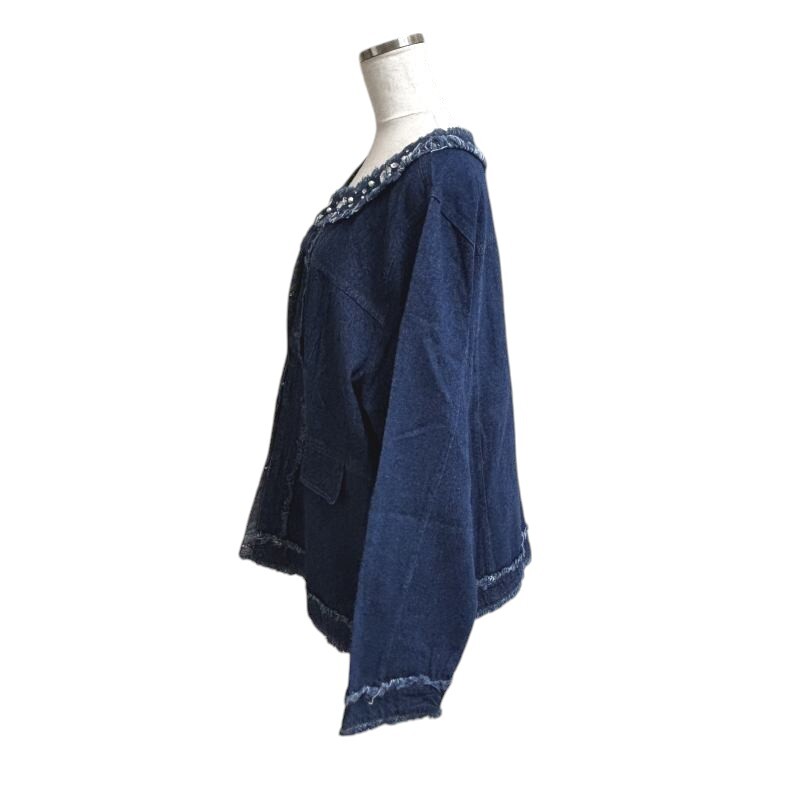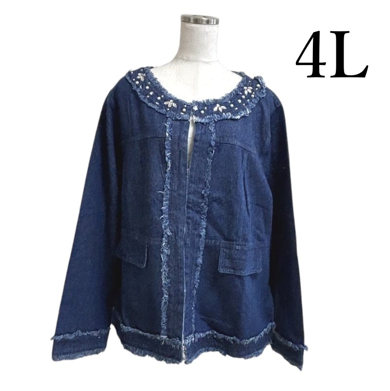 | 商品名稱 : | ノアンヌ レディース デニムジャケット 大きいサイズ フェミニン ノーカラージージャン パール付き 4L |