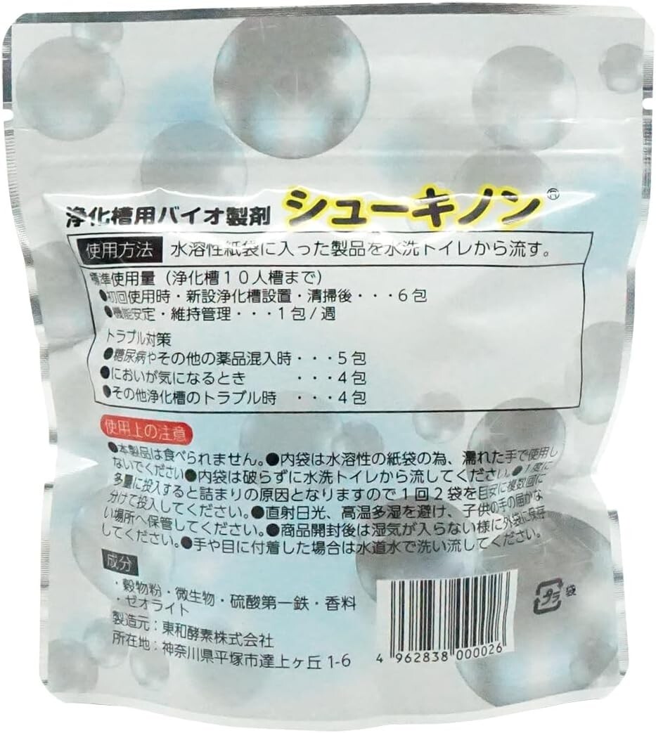 | 商品名稱 : | 《浄化槽用バイオ製剤 シューキノン 120g 》バイオで分解 強力脱臭 トイレ お風呂 浴槽 洗濯機 浄化槽 流すだけ 自然由来成分 |