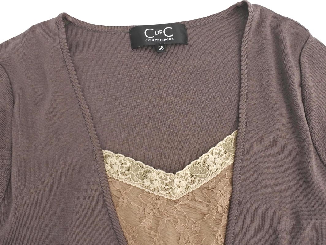 | 商品名稱 : | COUP DE CHANCE クードシャンス レース Vネック フェイクレイヤード ニット カットソー size38/茶 ■◆ ☆ ffc4 レディース |