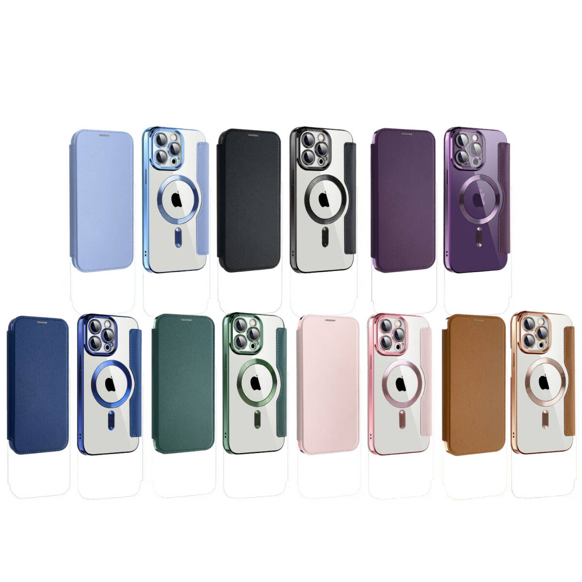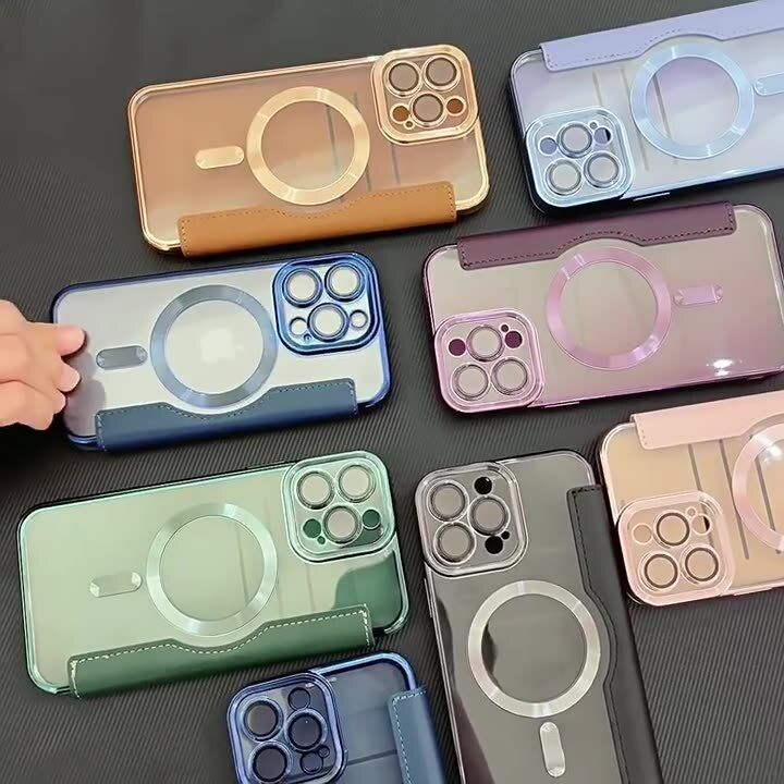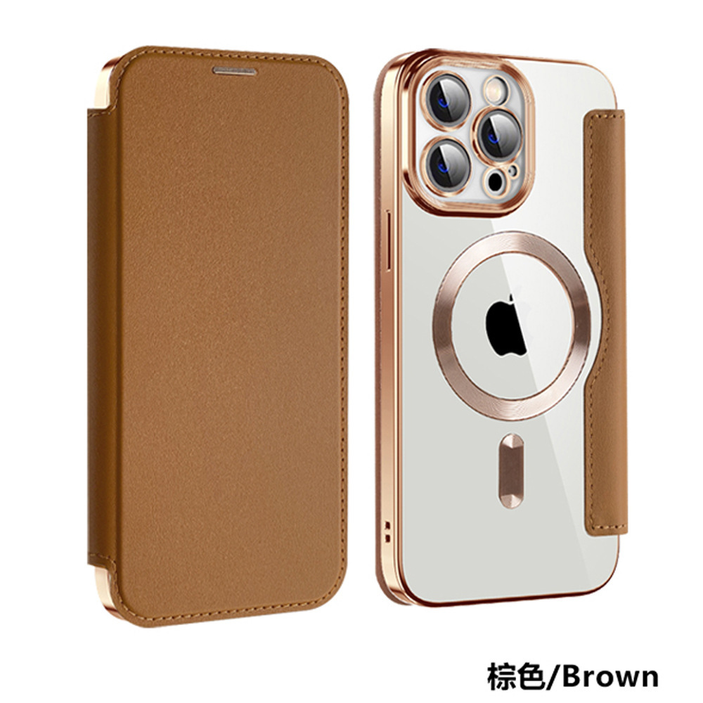 素材:PU レザー(フラップ)、TPU(インナーシェル)、PC クリア背面、電気メッキフレーム