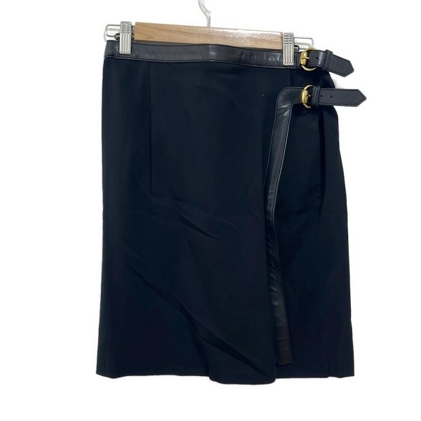 グッチ GUCCI 巻きスカート サイズ38 S 200302 - 黒 レディース ひざ丈/レザートリム/ホースビット/2008年 ボトムス