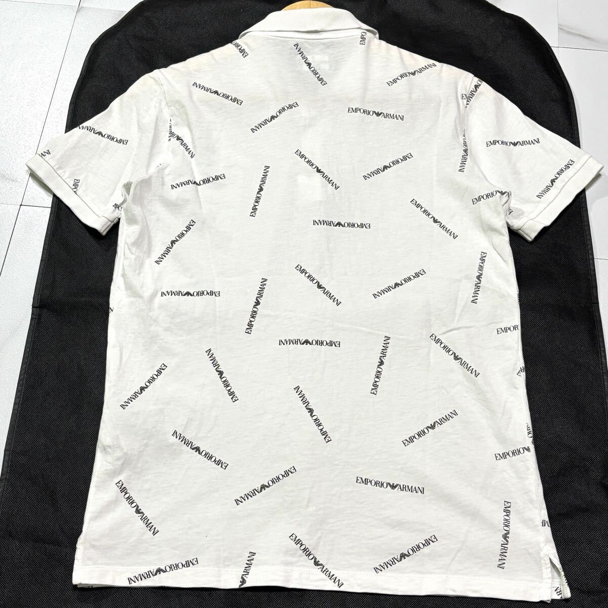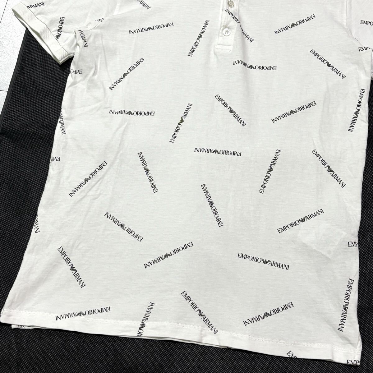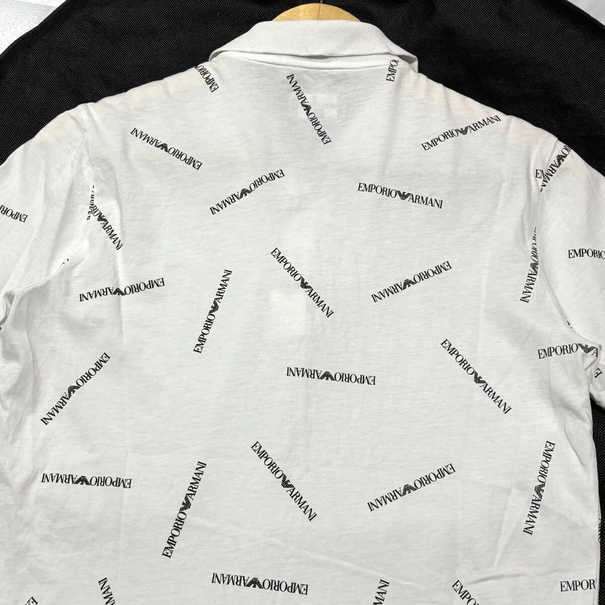 美品/ Lサイズ EMPORIO ARMANI エンポリオ アルマーニ ポロシャツ 半袖 総柄 イーグルロゴ ホワイト 白