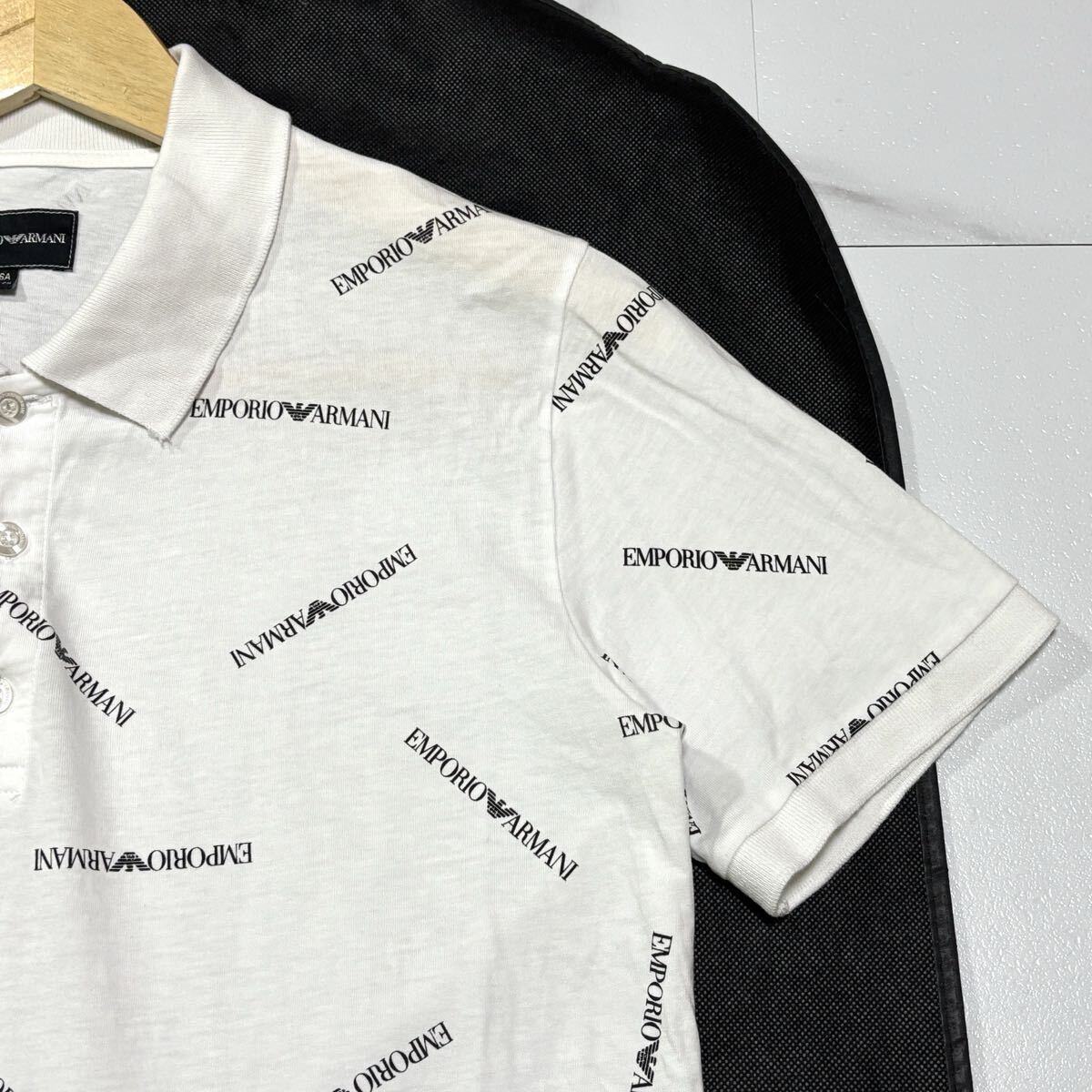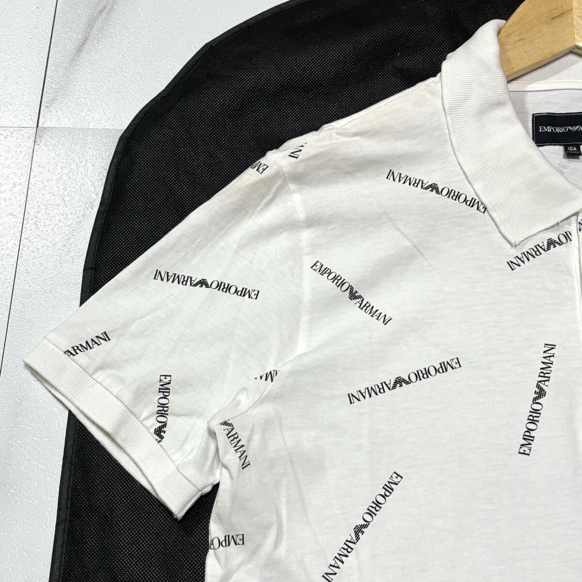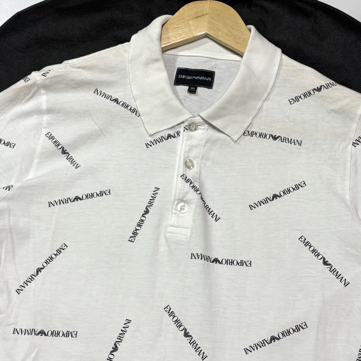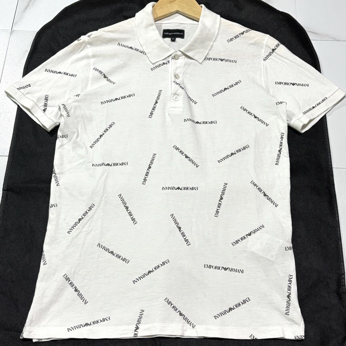 美品/ Lサイズ EMPORIO ARMANI エンポリオ アルマーニ ポロシャツ 半袖 総柄 イーグルロゴ ホワイト 白