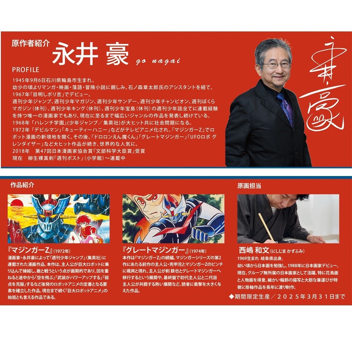 色紙「マジンガーZ」「グレートマジンガー」は、永井豪公認の複製画で、1972~74年に熱狂した世代にぴったりの贈り物です。西嶋和文の筆によるこの作品は、数量限定のため、特別なコレクションとしても最適です。マジンガーの力強さと懐かしさを感じる一枚を、ぜひお手元に。
