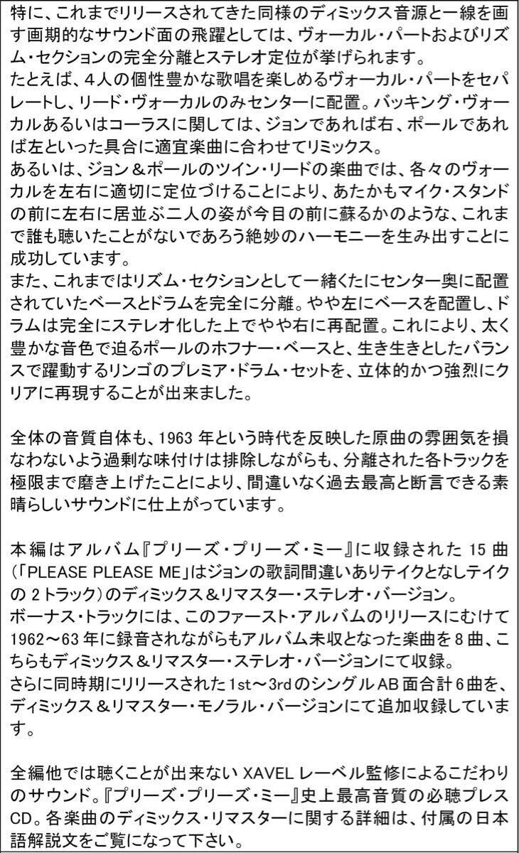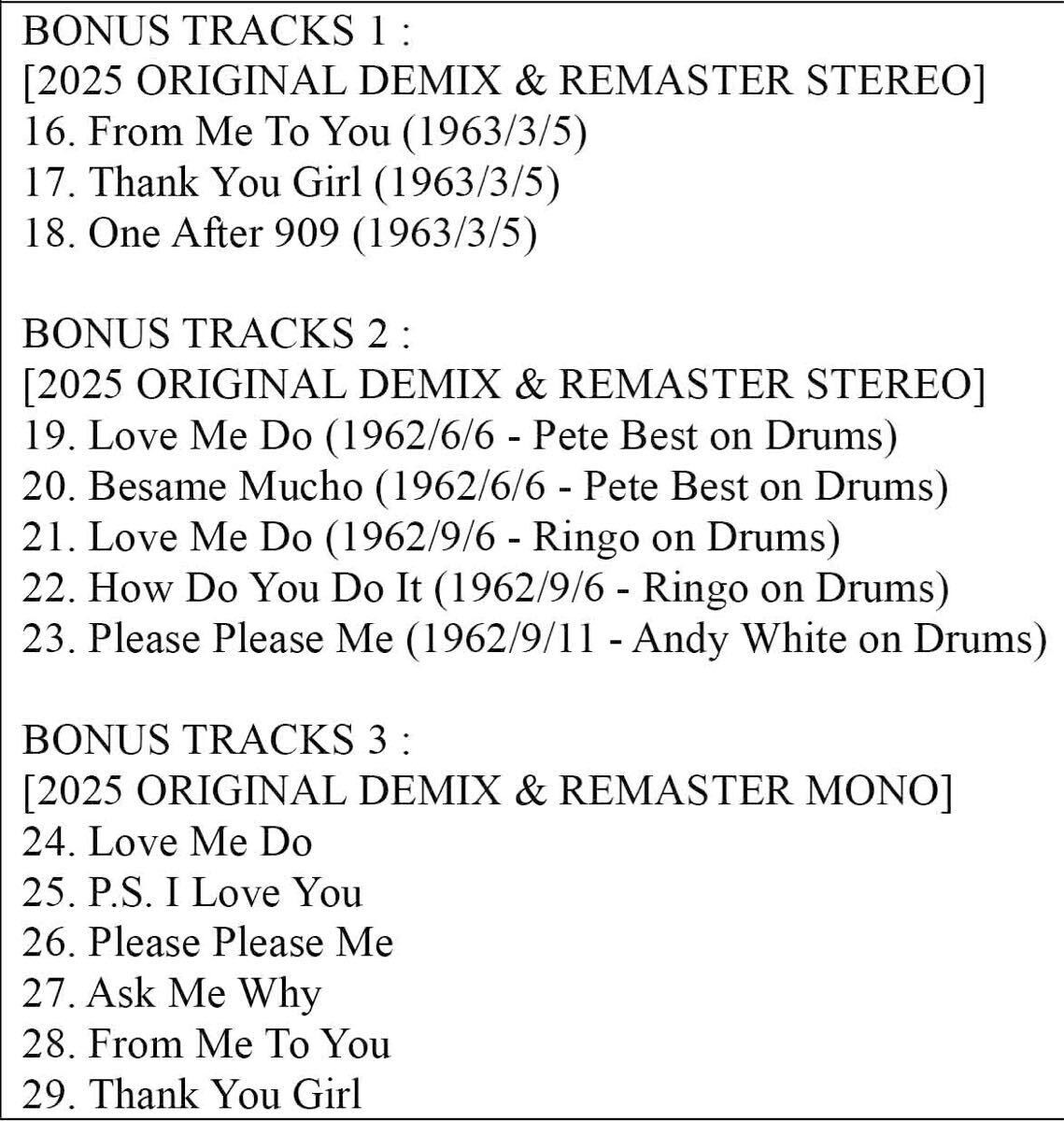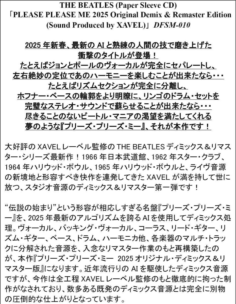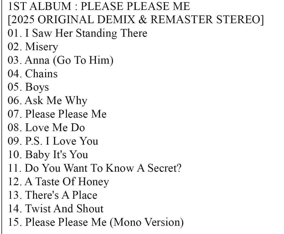 | 商品名稱 : | THE BEATLE ザ・ビートルズ PLEASE PLEASE ME 2025 Original Demix & Remaster Edition (Sound Produced by XAVEL) |