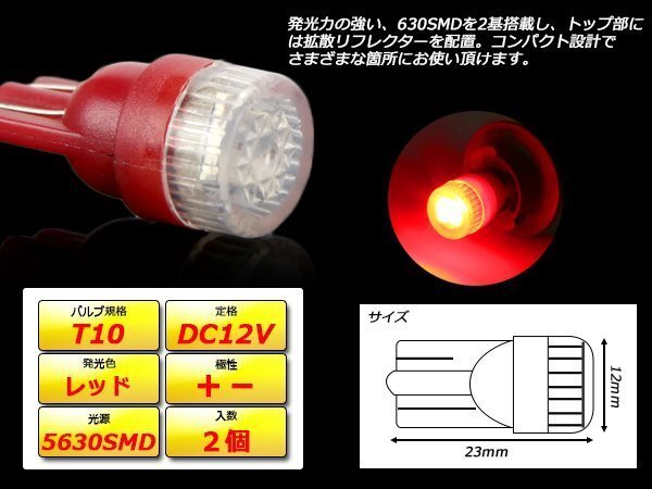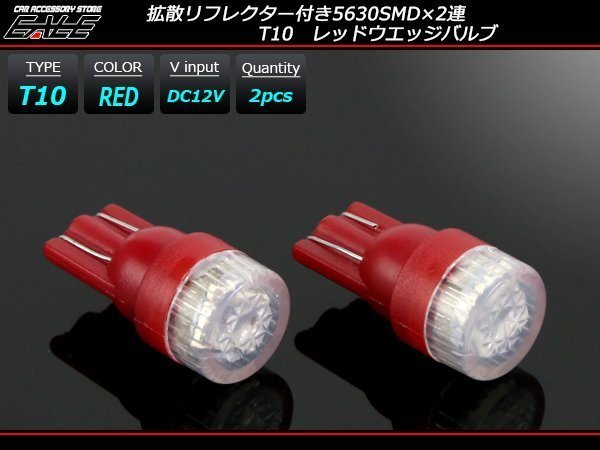 T10 LEDバルブ レッド 拡散リフレクター 5630SMD×2連 コンパクト ウェッジ球 2個セット A-120