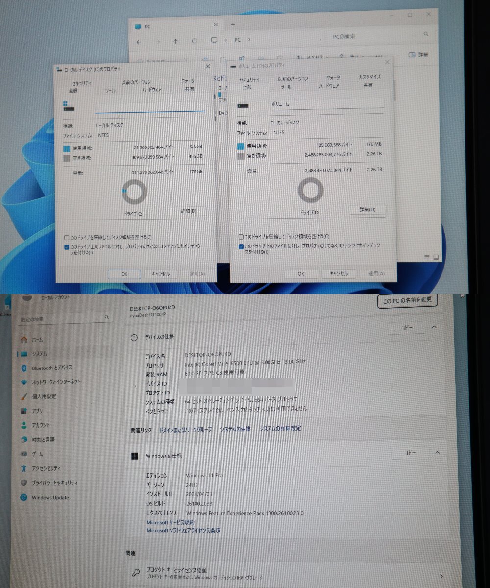 ■カテゴリー別のリンクはこちら■ →測定器・アマチュア無線 →工具・農業機械 →カメラ・映像機器 →オーディオ・楽器 →スポーツ・レジャー・自動車関連 →PC・周辺機器・ゲーム →ミシン・店舗用品・その他 ■商品説明■ サイズ:約 27 × 30 × 10 cm 100V Core i5-8500 3.00GHz RAM 8GB/HDD 3TB Windows 11Pro インストール 電源がONします。 DVD-RW読込できました。 本商品に対して専門ではないために 細部に渡る細かなチェックはできておりません。 また、中古品としてご理解いただき、 ノークレーム・ノーリターンでお願い致します。 ■外観■ 状態については写真判断の程よろしくお願いいたします。 中古品ですのでキズ、汚れ、擦り傷、サビなどが有ります。 内部バッテリーが消耗しています。 付属品に関しては、写真の物が全てです。 *************************** 台車やパレットを撮影用に使用している場合、付属しません。 バッテリー等の消耗品が付属する場合 どの程度消耗しているか不明ですので、保証は致しかねます。 ガソリンやオイルを使用している商品の場合は、 配送中の油漏れ防止のため 抜いて発送致しますので、ご了承ください。 ***************************** ノークレーム・ノーリターンでお願いいたします。 | ||||