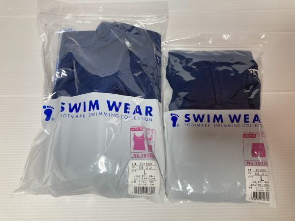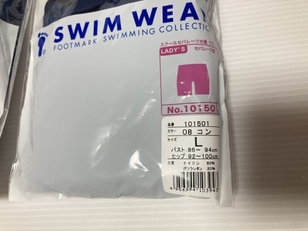 フットマークのセパレートタイプのスクール水着です。 カメラの色補正によって若干明るい色に見えておりますが実際にはもっと暗めの色になります。 写真を撮るために袋から出しましたが、未使用品です。 自宅保管のため、ご理解頂ける方のみご購入をお待ちしております。