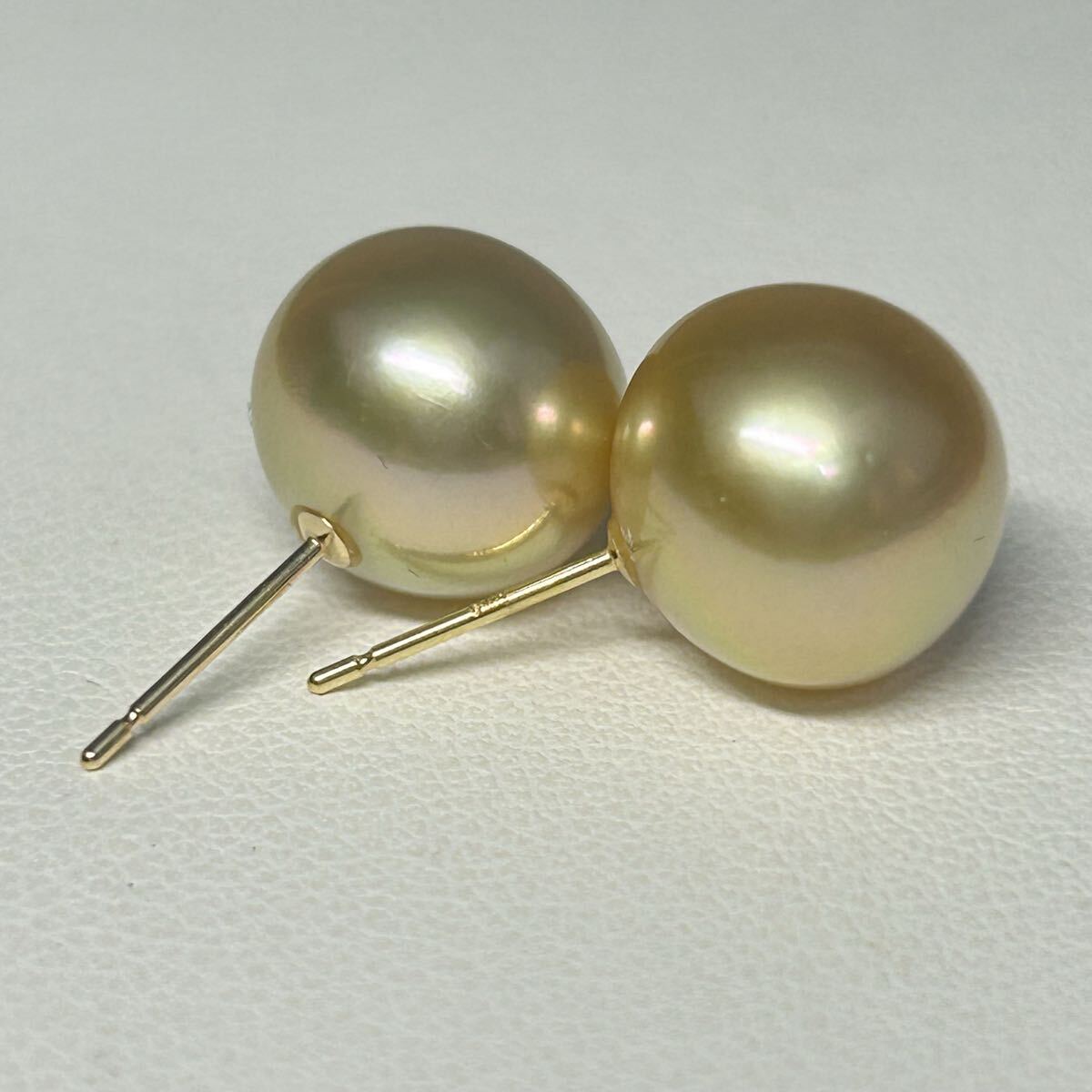 【光沢抜群!10.7mm 】K18 天然 白蝶真珠 南洋パール 照り艶抜群 直結ピアス 南洋白蝶真珠 3.8グラム pearl jewelry ジュエリー