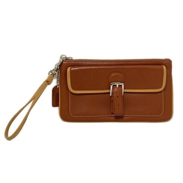 コーチ COACH リストレット - レザー ダークブラウン×ライトブラウン ポーチ