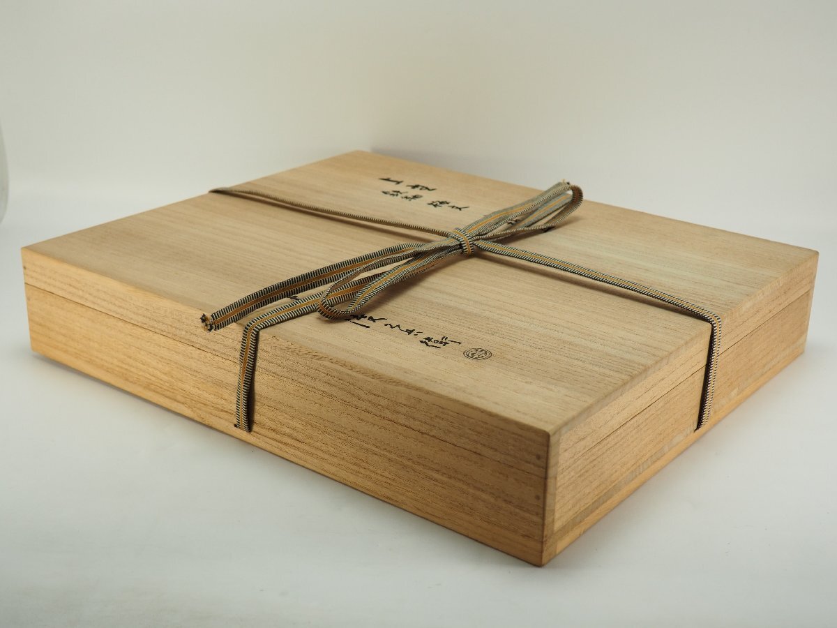 『箱の記載共箱』であればタイトルに『共箱』、共箱以外の合わせ箱、その他の保管箱が付属する場合は『箱付』と記載させて頂いております。