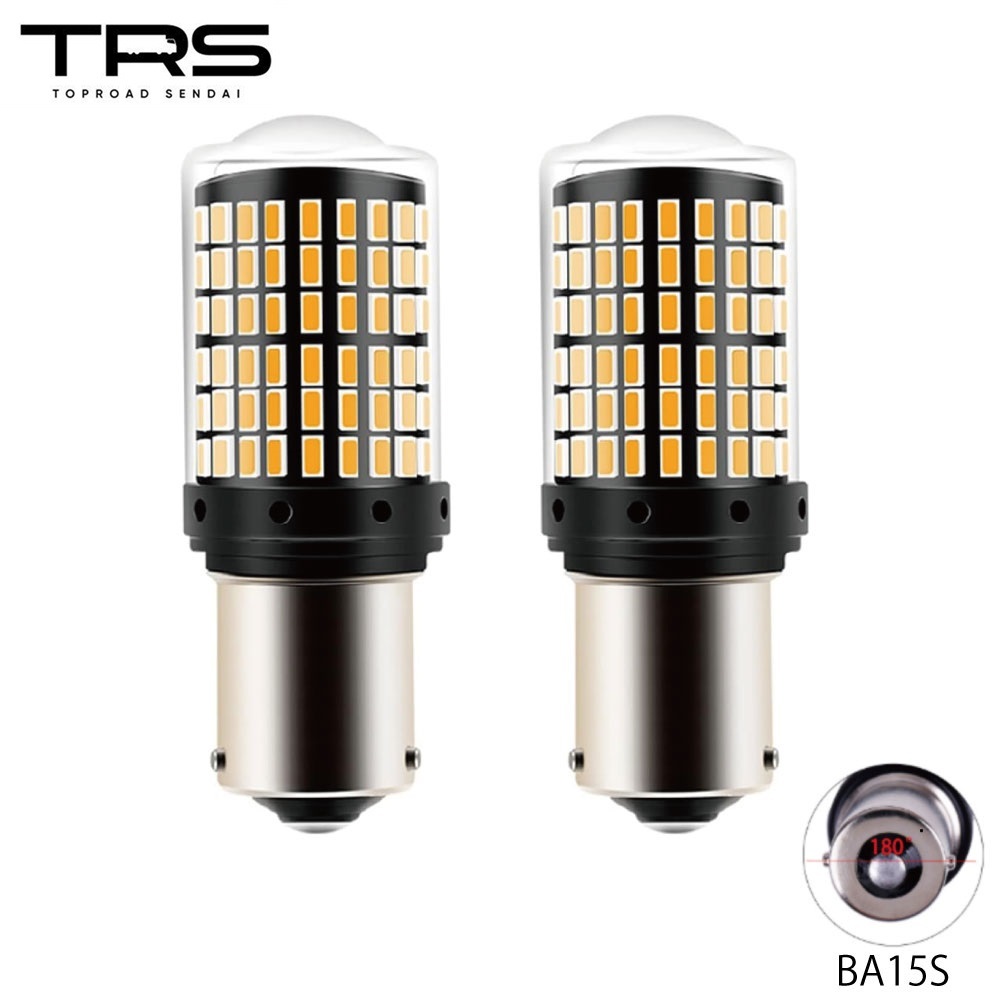 【2023/7/19 追記】 ※注 車両・取付箇所によっては抵抗値が不足し、ハイフラが発生する可能性があります。 その際は別途抵抗器(別売)を追加して取付する必要があります。予めご了承下さい。 (フロント or リアにて白熱バルブを使用しているとハイフラは発生しませんが、いずれも LED仕様としている場合はハイフラが発生しやすいです。製品自体に抵抗は内蔵されておりますが、トラックの場合必要とされる抵抗値が大きく、白熱バルブを使用しているか否かでハイフラ発生確率が変わります) 【商品名】 TRS 高輝度LEDウインカーバルブ S25 ハイフラ抵抗内蔵 アンバー 2個セット 12/24V共用 ピン角180度 BA15S ガラス易碎品限空運,非易碎品可使用海運。 カバー 310040 【商品説明】 ■ハイフラッシャーを防止する抵抗内蔵のLEDバルブ ■高発光効率の3014SMD LED素子144連搭載。上部は18連、周りは126連、超拡散レンズ(全カバー)付きで光線を集中でき照射距離を増やせます。360°全方位照射でき、昼間の環境で十分の認知出来る明るさと拡散性を備えています。市販のハロゲンより省エネルギーの上で、明るさは大幅にアップ! ■航空用アルミ素材と中空設計で放熱効果が抜群!LEDの性能を確保し、安定した発光が可能です。LEDチップと抵抗から発生する熱を効率良く逃し寿命を伸ばします、30000時間以上の耐久性。 ■12/24V共用なので幅広い車両で取付可能! 【各種仕様】 ■入数:2個 ■品番:310040 ■発光カラー:アンバー ■全光束:片側1500 lm (左右合計 3000 lm) ■取付:純正の電球と交換するだけの簡単取付 ■口金:S25 BA15S (ピン角度180度) ■注意事項 ※本製品はウィンカー専用バルブです。マーカー等常時点灯でのご利用は行わないでください。 ※S25バルブはピン角度180度(BA15S)と、150度(BAU15S)の2種類ありますが、本製品は【ピン角度180度】となります。お間違えの無いようご注意下さい。 >