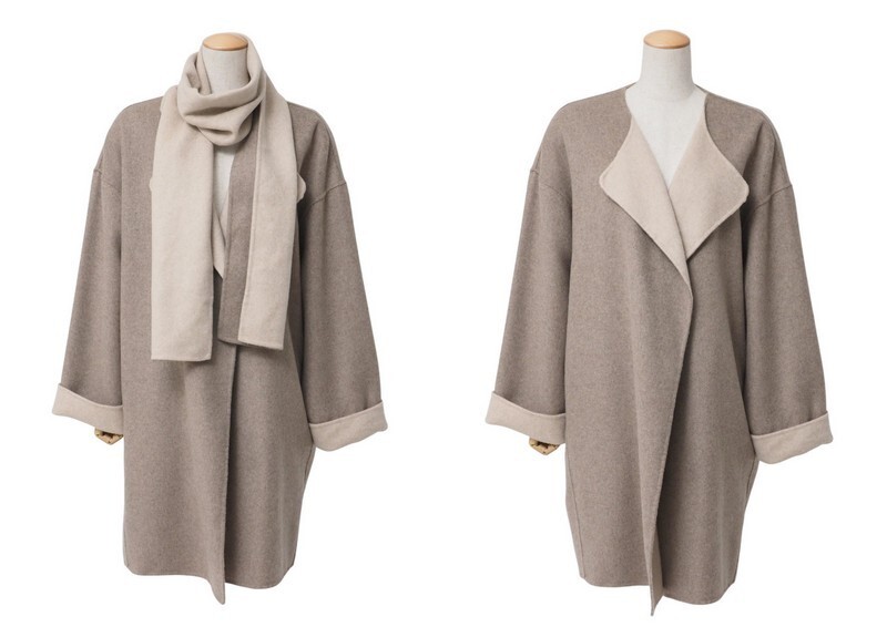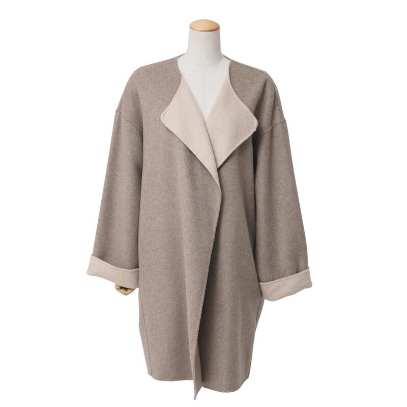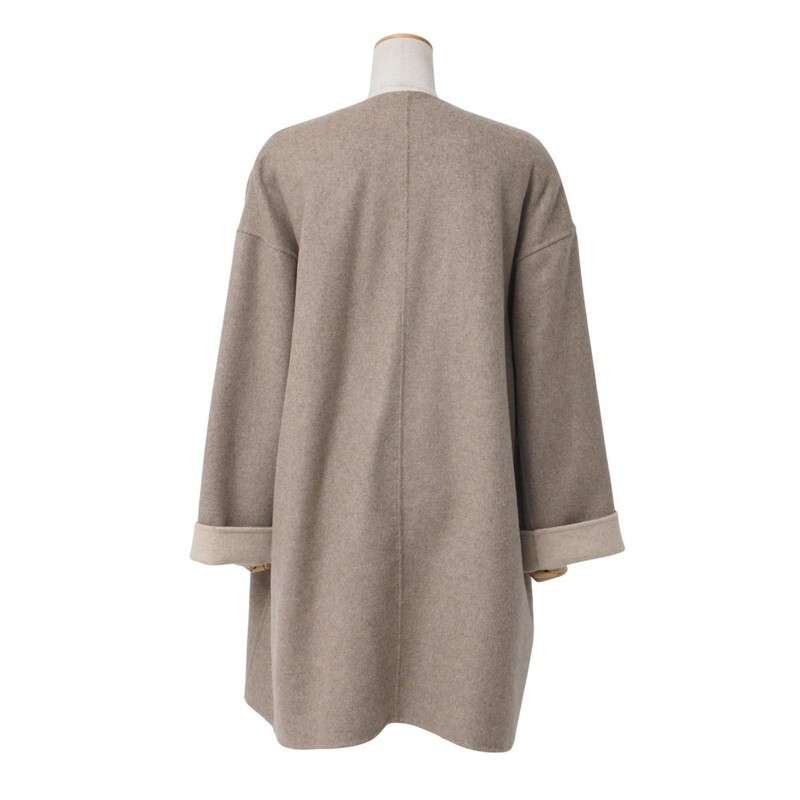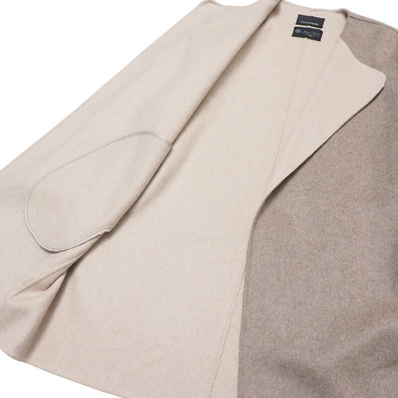 | MI1839★イタリア製生地使用 Marini & Cecconi エムプルミエ ブラック カシミヤウール ダブルフェイス マフラー付き コート ブラウン 34 | |||