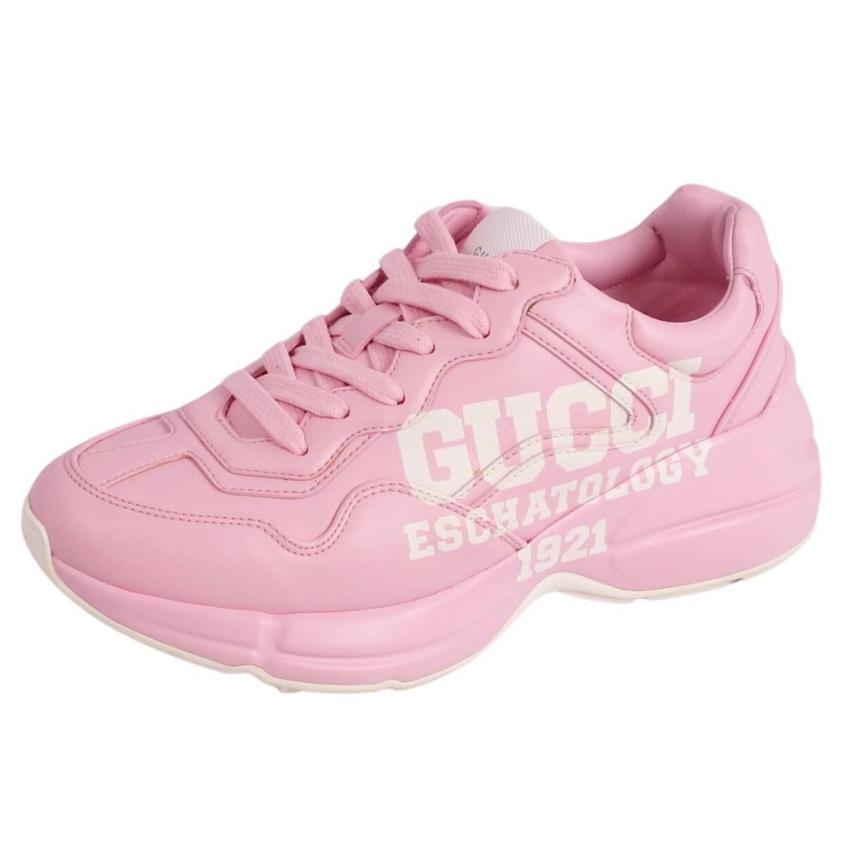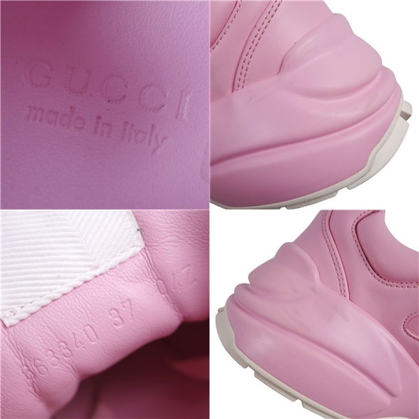 | 美品 グッチ GUCCI スニーカー RHYTON ライトン ロゴ レザー シューズ 靴 レディース イタリア製 37(24cm相当) ピンク |