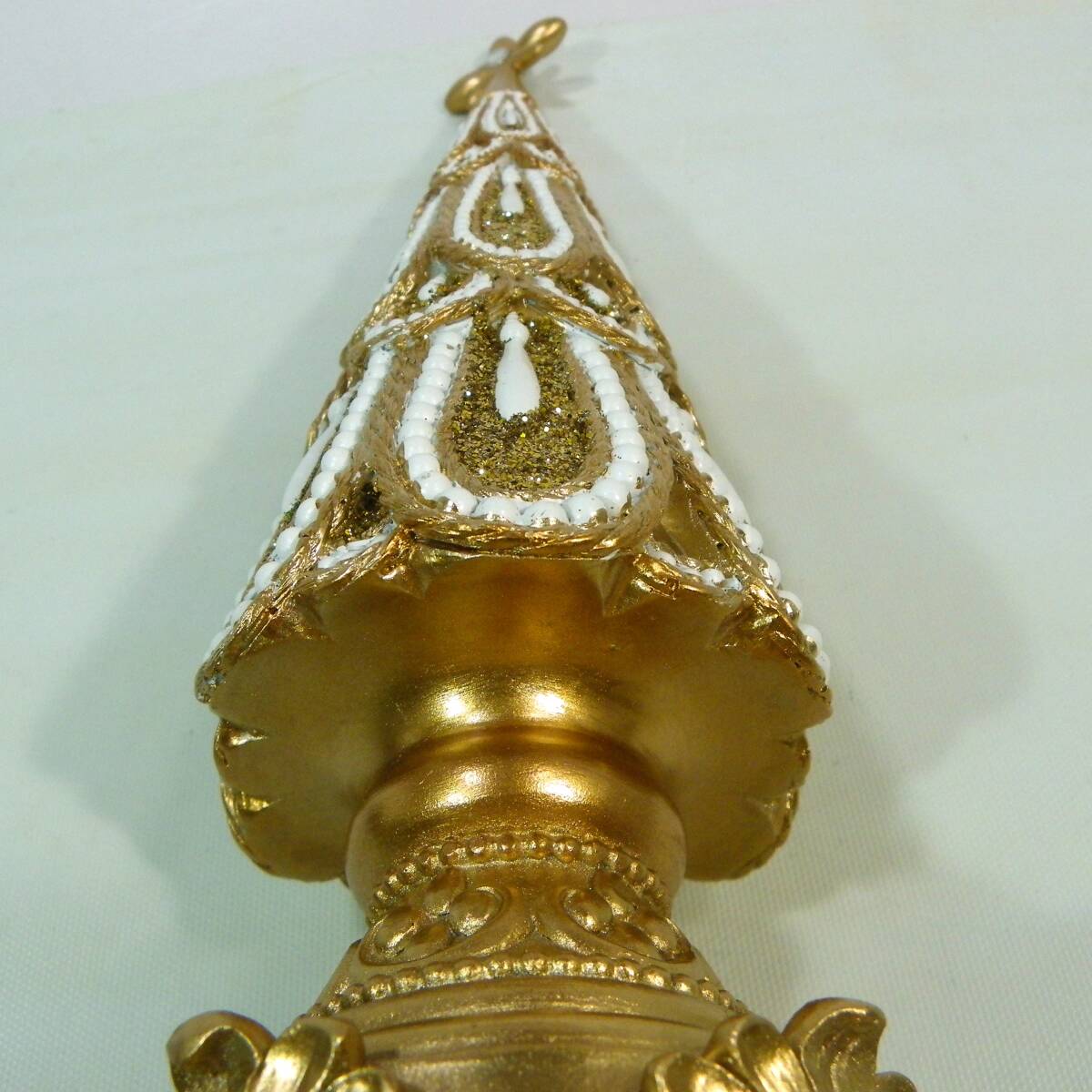 クリスマスツリー 金色 ホワイトクリスマス 両面.硝子?ダイヤ? USEDですので使用感、汚れ、その他等御座いますので、神経質の方は入札お断り致します。その他、見落とし等有る場合も御座いますので、完璧を求める方、又細かな事の気になる方は、御自分の眼で確かめて買える所をお薦め致します。