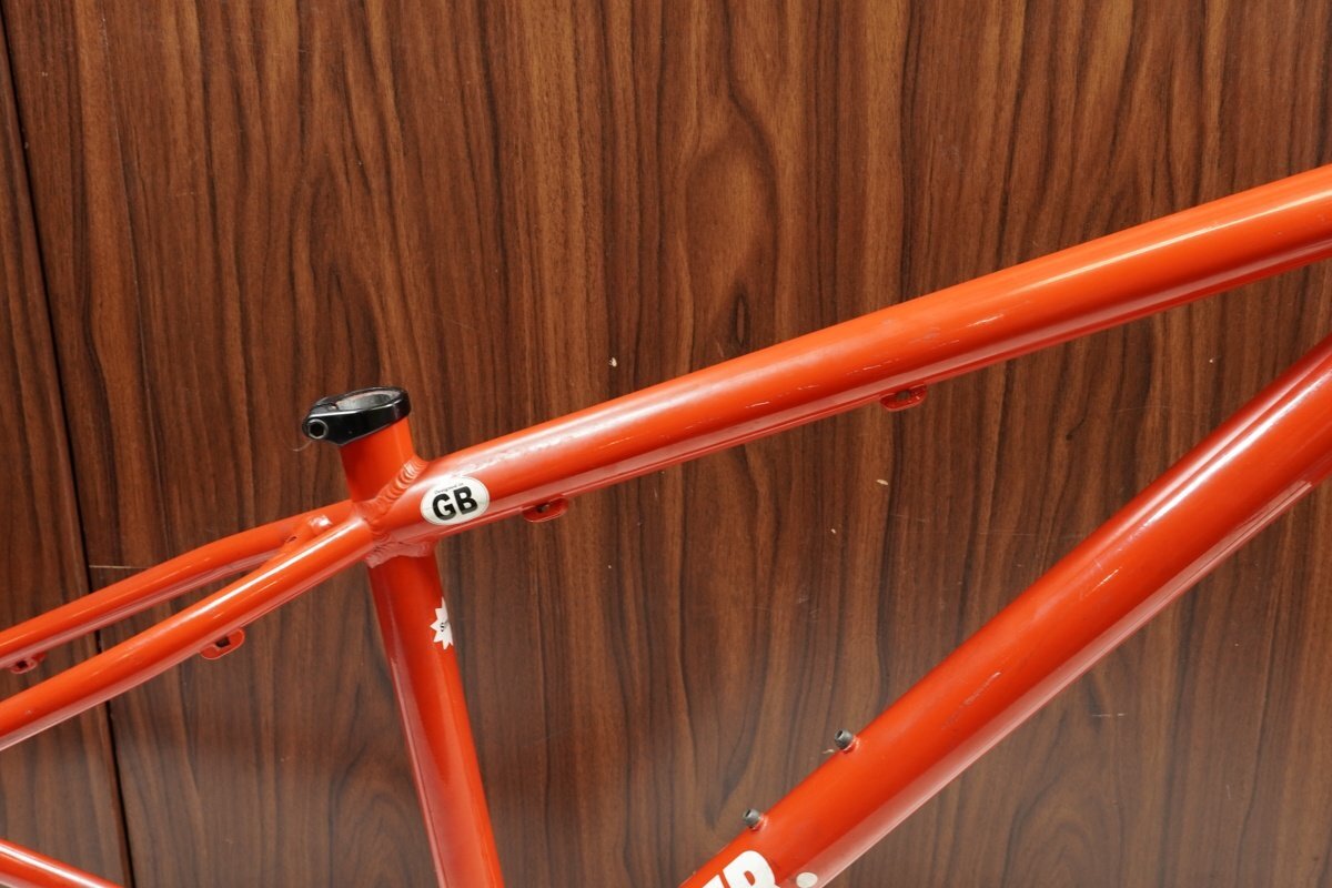| 外観補足 | 全体的に日焼けや汚れが目立ち強い使用感がございます。 チェーンステーに目立つタイヤ擦れがございます。 トップチューブ前より右側に小さな凹みがございます。 フォーク全体、チェーンステー左右に目立つがり傷がございます。 チェーンフォール傷がございます。 ヘッドセットの下椀部分はフレーム側に装着されています。上椀側は解体同梱となります。 販売証明書を発行致します。 ※お送り先とご希望名義が異なる場合はオーダーフォーム備考欄に明記して下さい。 ※詳しくは画像をご覧くださいませ。 |