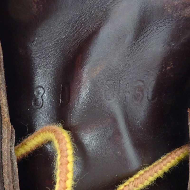 全体的に汚れや履きジワ、スレキズなどの傷みが見受けられ、着用感がございます。