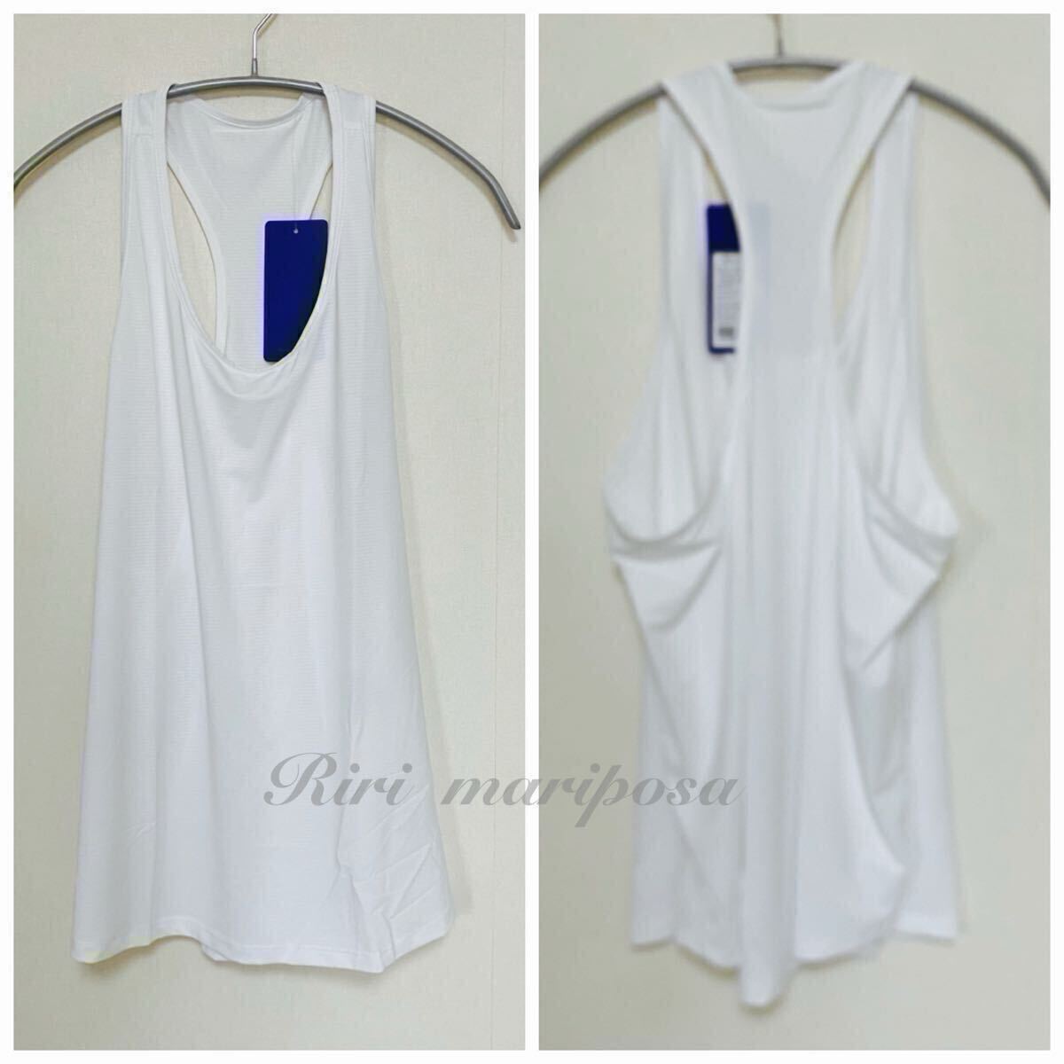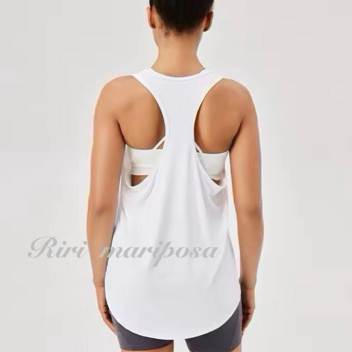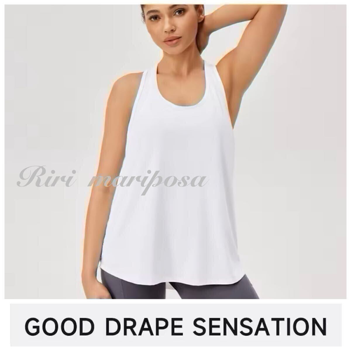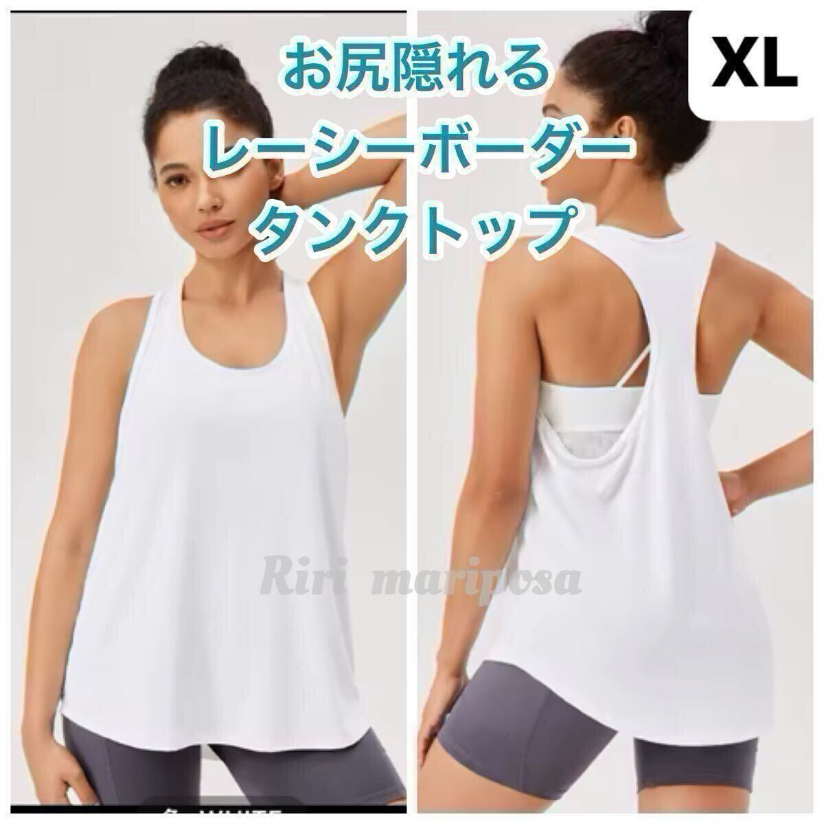 【新品】お尻隠れる体型カバー*レーシーボーダータンクトップ 白 ヨガウェア