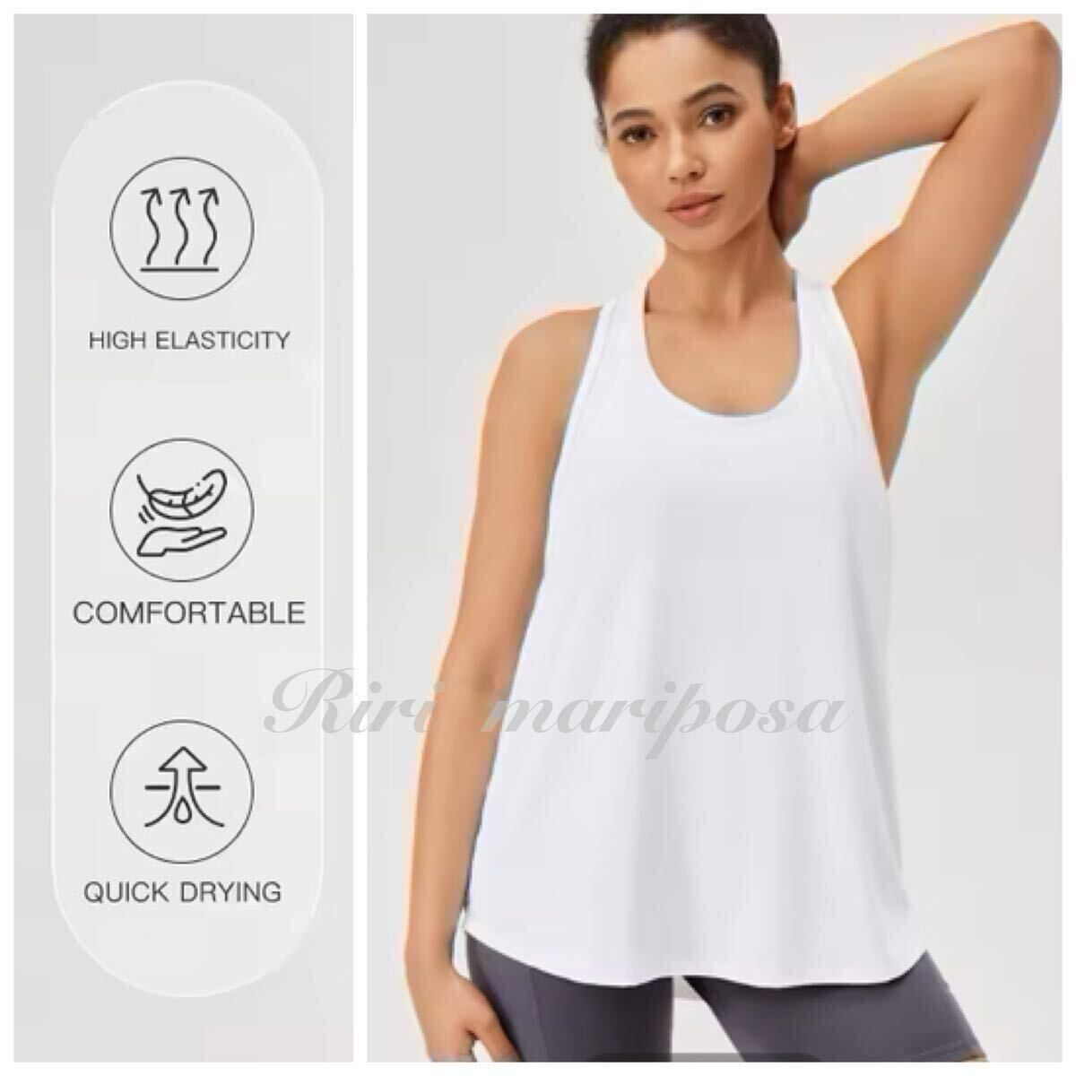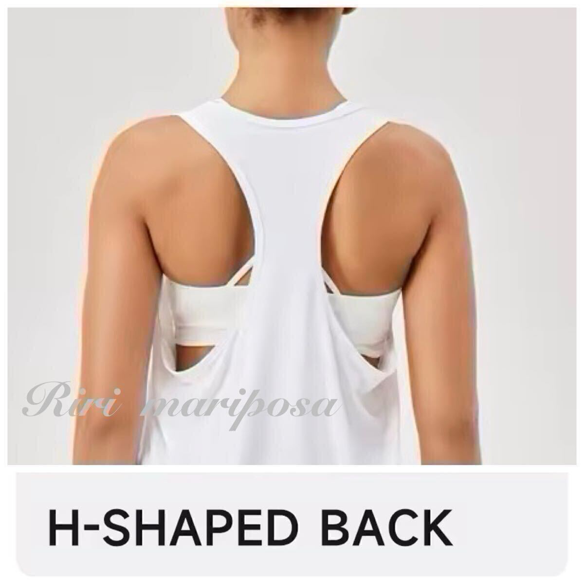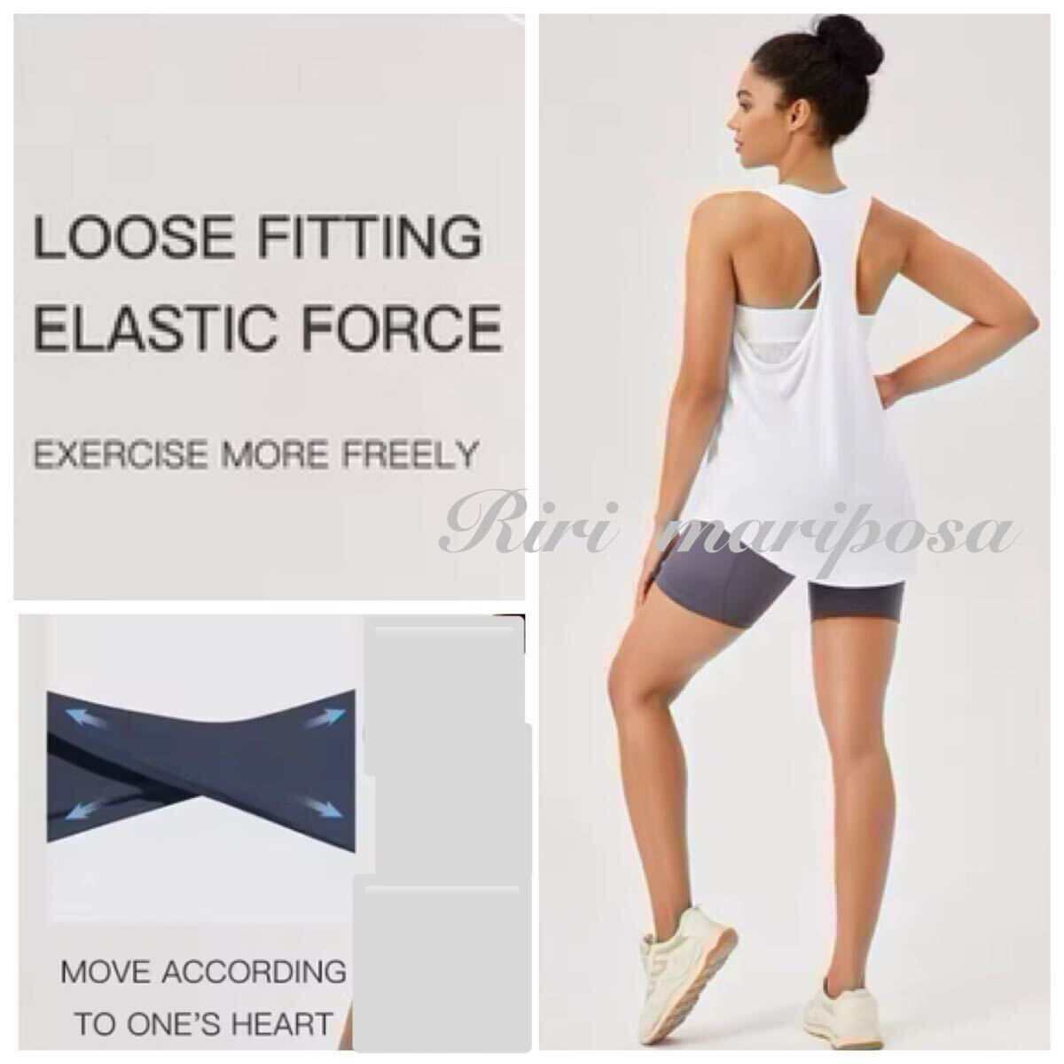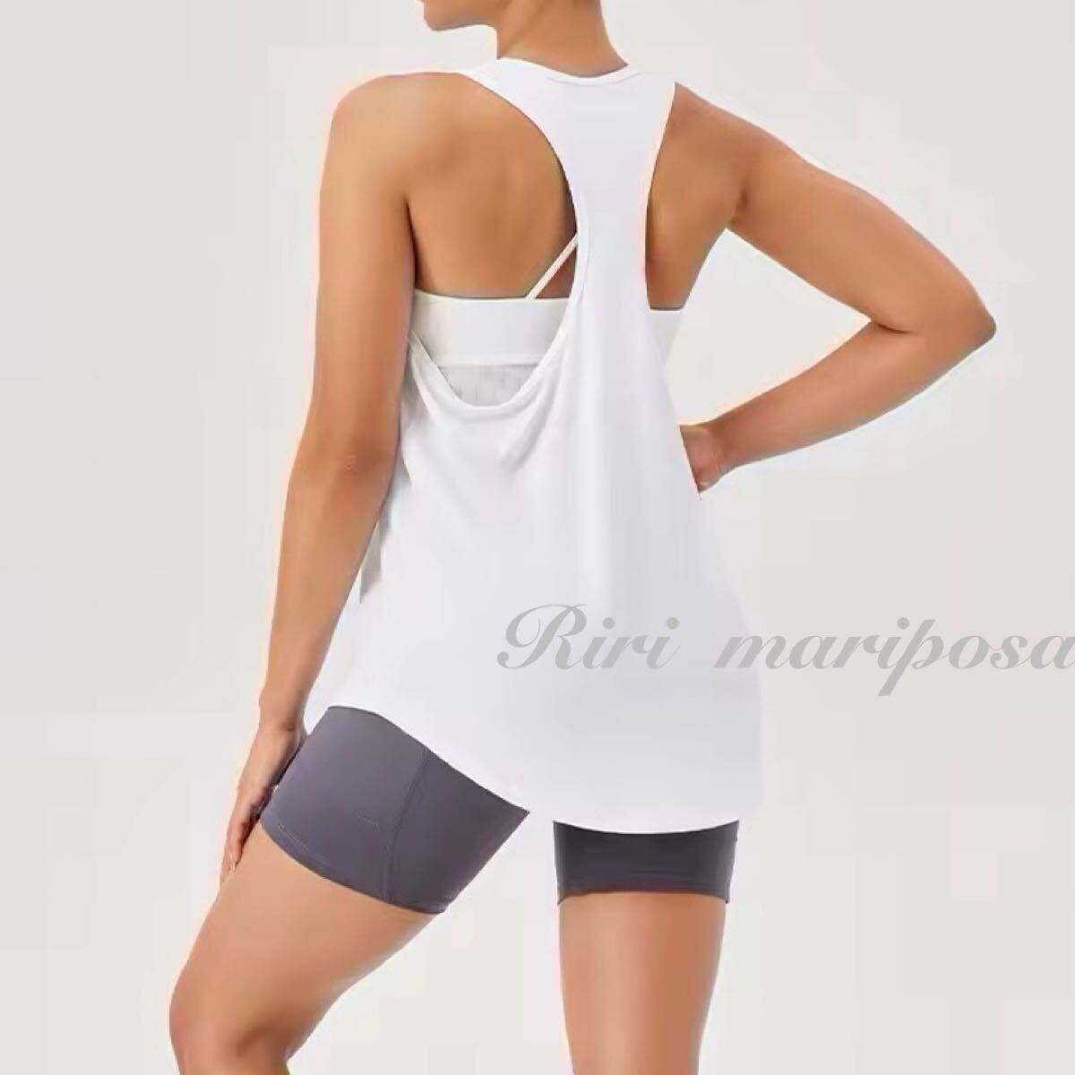 【新品】お尻隠れる体型カバー*レーシーボーダータンクトップ 白 ヨガウェア