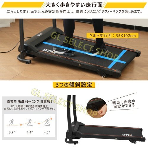 【傾斜角度3段階】スピード調節と3段階の傾斜角度で、自宅にいながら集中してボディメイクが可能です。 【速度調整1~10km/h】スピード調整は1~10km/h でスピード自由自在これ一台で、ゆっくりウォーキングからハードなランニングまで!家族でシェアもオススメ!!0.1km/h刻みで調節できるので、に合わせてお好みの速度に設定できます。1km/h リハビリ・軽めのお散歩に 5km/h ちょっと早歩きに7km/h ジョギングに 10km/h ダイエット 【使いやすい操作パネル】 誰にでも簡単に操作ができるようシンプルな機能に特化させました。使いこなせないなんて無駄な機能はありません。LEDディプレイ LEDなので暗いところでも見やすい表示がくっきりと見やすいディプレイです。 【35×102cmの広々走行面】ベルトサイズ: 幅約35cm 奥行き約102cm。連続使用時間はたっぷりの45分(※約)。 【超静音&衝撃吸収システム】外に出ないで静かに散歩する。5層ベルト ソフトドロップシステムで設計されているため、床を傷つける心配はありません。左右にはゴム制振装置がついています。衝撃を吸収し、騒音を減らすことができます。 【コンパクト収納】折りたためて省スペース収納方式ソファー※請確認是否動物毛皮。動物毛皮製品屬於華盛頓條約条約牴觸物品,無法國際運送。 下収納可能:薄くて邪魔になりますん。シンプルで主張しすぎないデザイン。ソファー※請確認是否動物毛皮。動物毛皮製品屬於華盛頓條約条約牴觸物品,無法國際運送。 下に収納できます。 【タブレットなどが置ける】スクリーン前には、スマートフォンやタブレットを置ける凹槽があります。トレーニング中も便利にデバイスを使用でき、快適な運動をサポートします。 【AUX接続で音楽再生】AUXコード接続で音楽再生可能、音量はスマートフォンで調整できます。 【心拍数の測定】ハンドル含有安全氣囊的方向盤,無法協助運送購買,若無含安全氣囊,按下確認即可下標。 グリップを軽く握るだけで、心拍数を瞬時に確認できます。これにより、安全で効果的な運動が実現できます。
