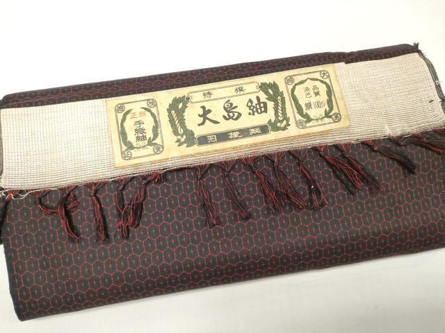 商品名稱 : 平和屋着物▼男性 大島紬 反物 着尺 アンサンブル 手織 亀甲柄 黒地 証紙付き 逸品 未使用 DAAW6313we
