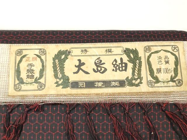 平和屋着物▼男性 大島紬 反物 着尺 アンサンブル 手織 亀甲柄 黒地 証紙付き 逸品 未使用 DAAW6313we