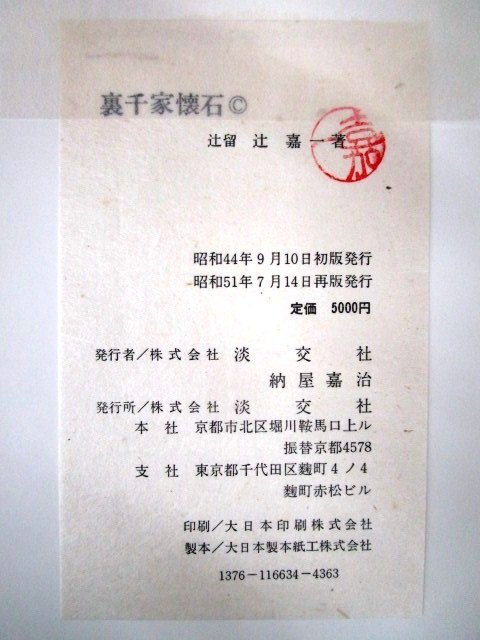 | 商品名稱 : | ◇F2224 書籍「裏千家懐石」千宗室 辻留 辻嘉一著 昭和51年 淡交社 函付 茶道/日本料理 |